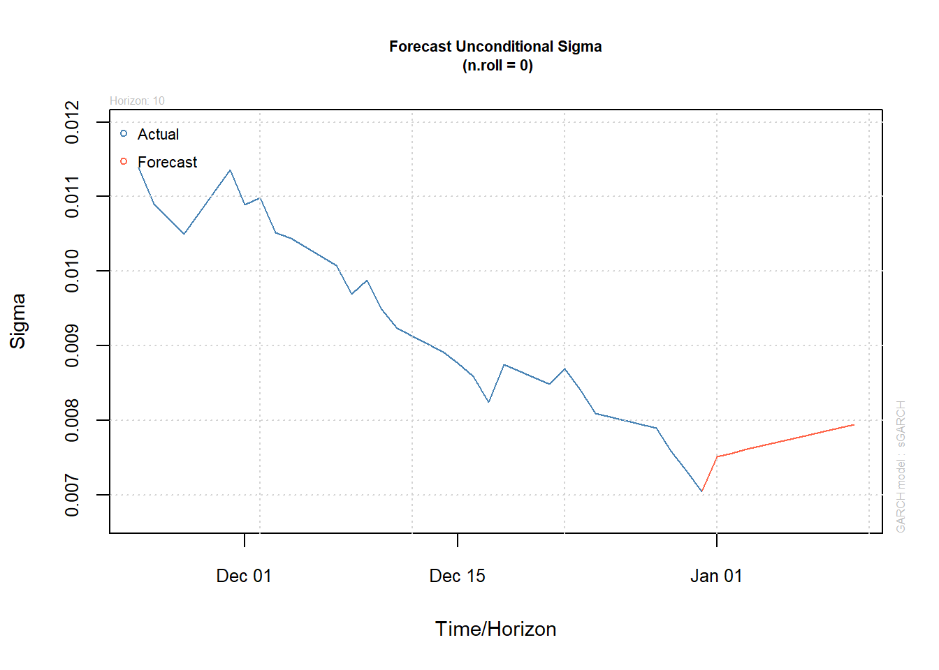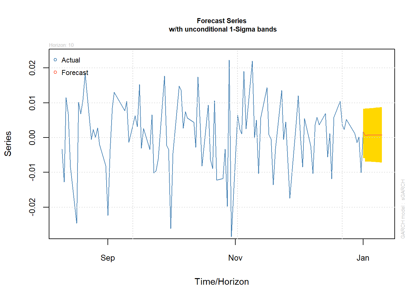uspec = ugarchspec(variance.model = list(model = "sGARCH", garchOrder = c(1, 1)),