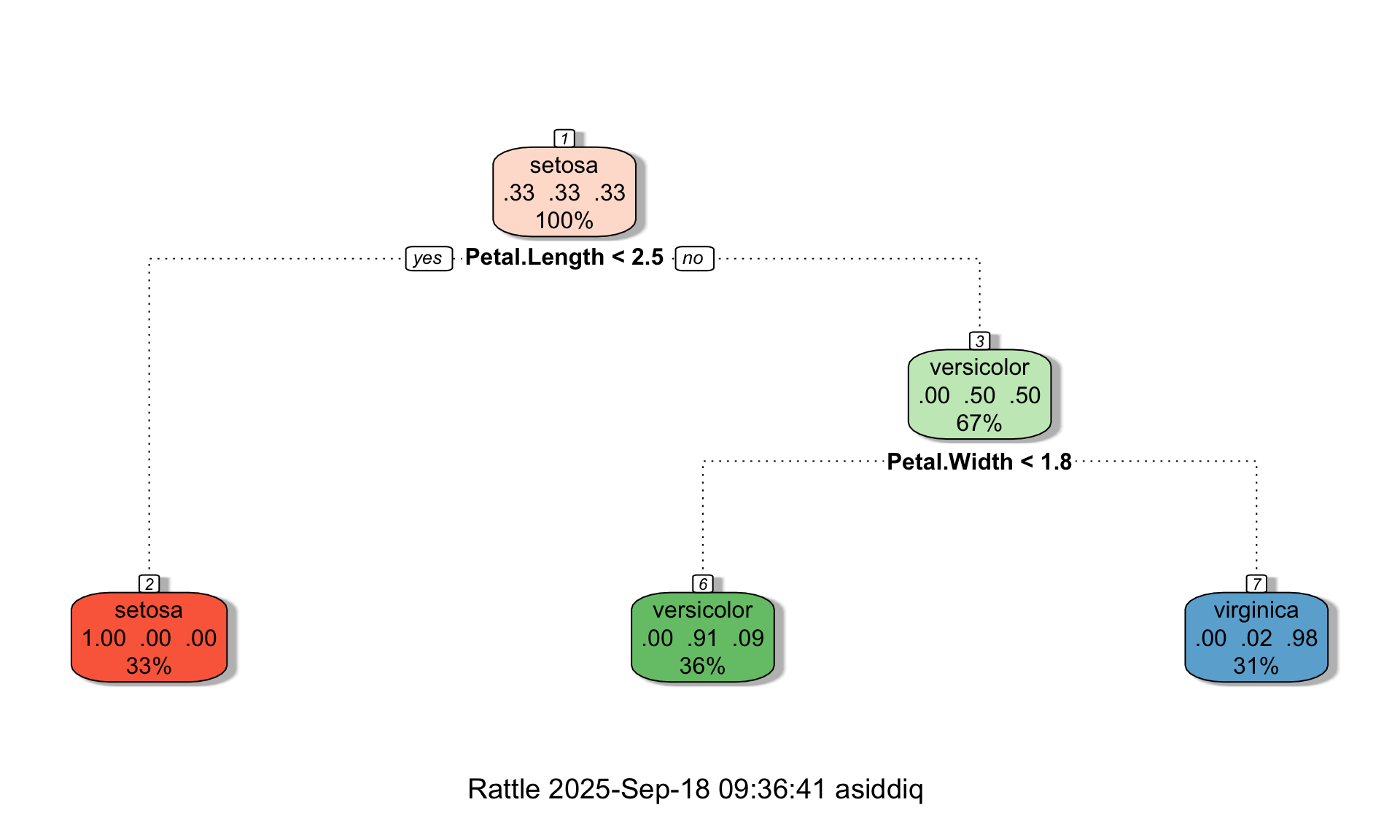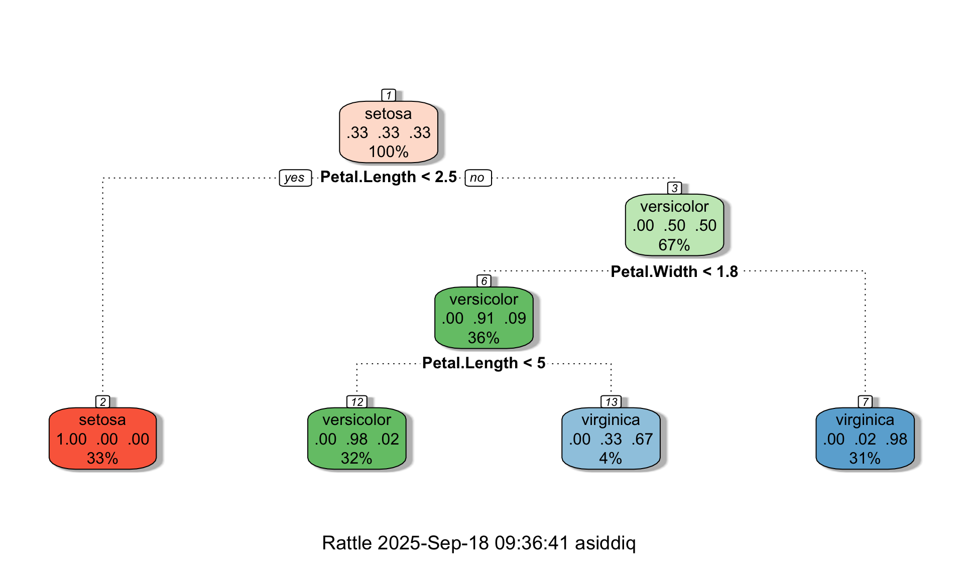 tree <- rpart(Species ~., data=iris, method="class", maxdepth = 3, minsplit = 10, minbucket = 10, cp = 0)