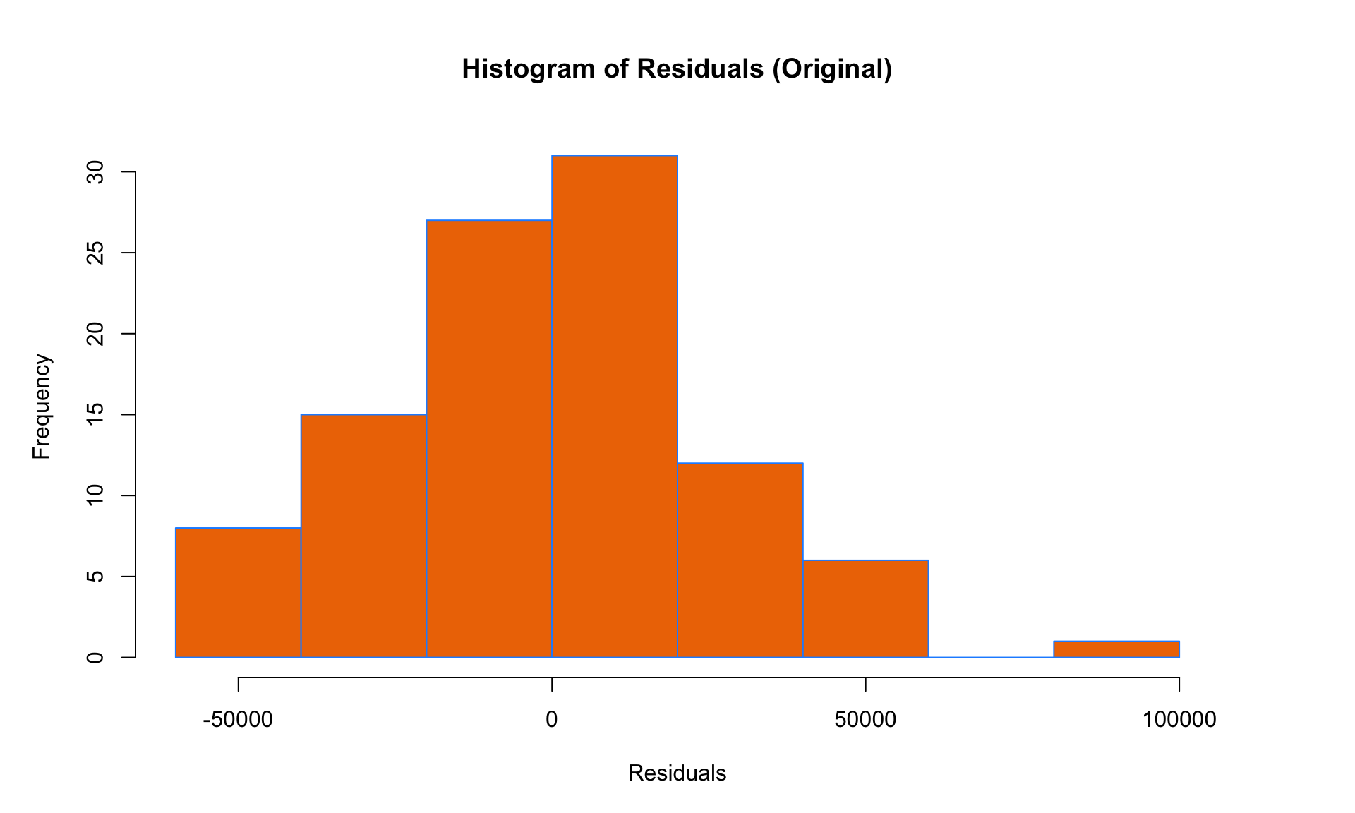 - Normality: The distribution of the residuals is approximately Normal (“bell-curved”).