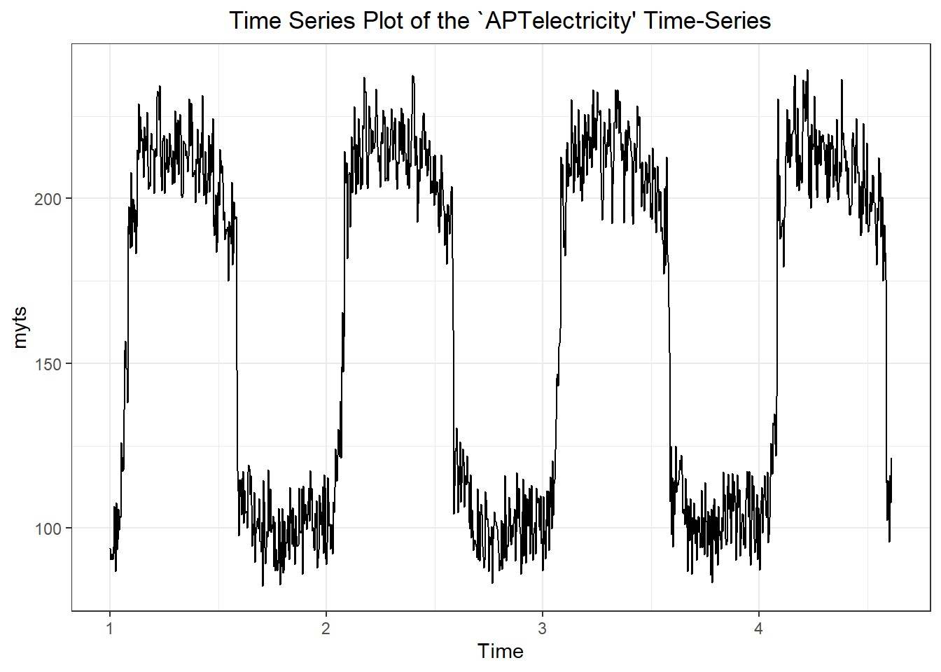 autoplot(myts) + ggtitle("Time Series Plot of the `APTelectricity' Time-Series") +