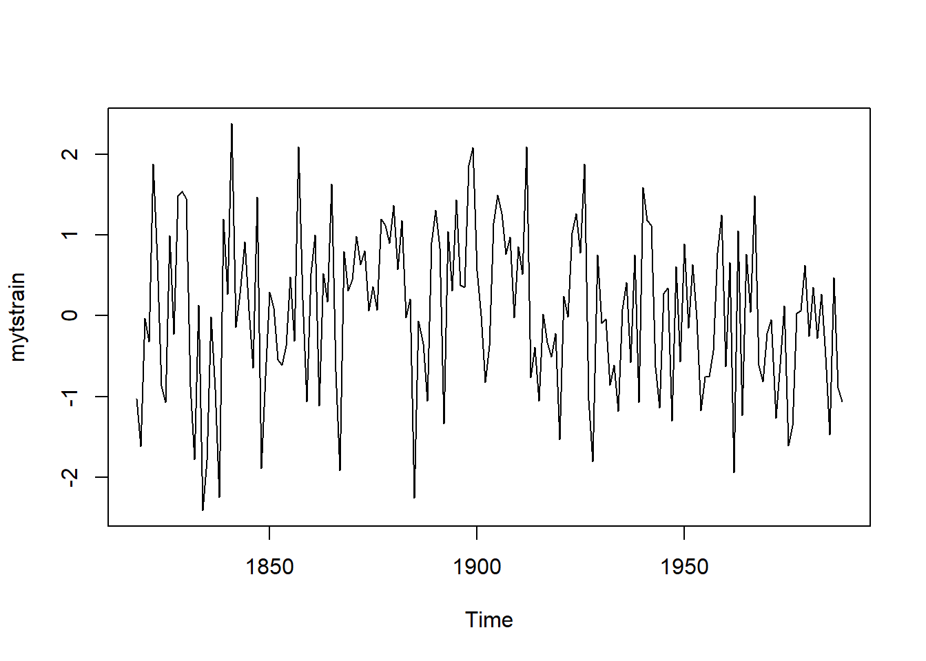 mytstrain <- window(myts, start = 1818, end = 1988) #subset the time series using window function