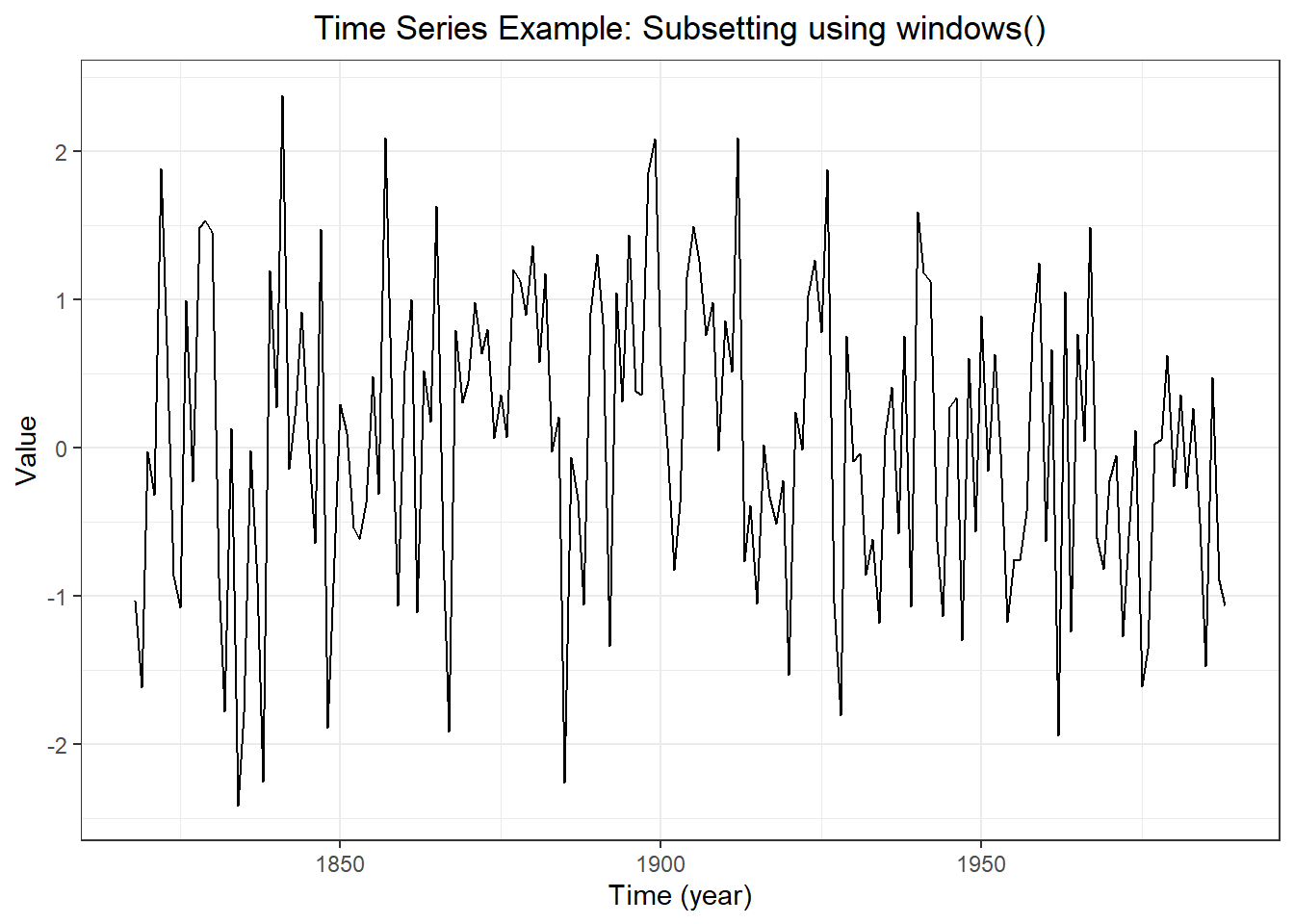 ggtitle("Time Series Example: Subsetting using windows()") +