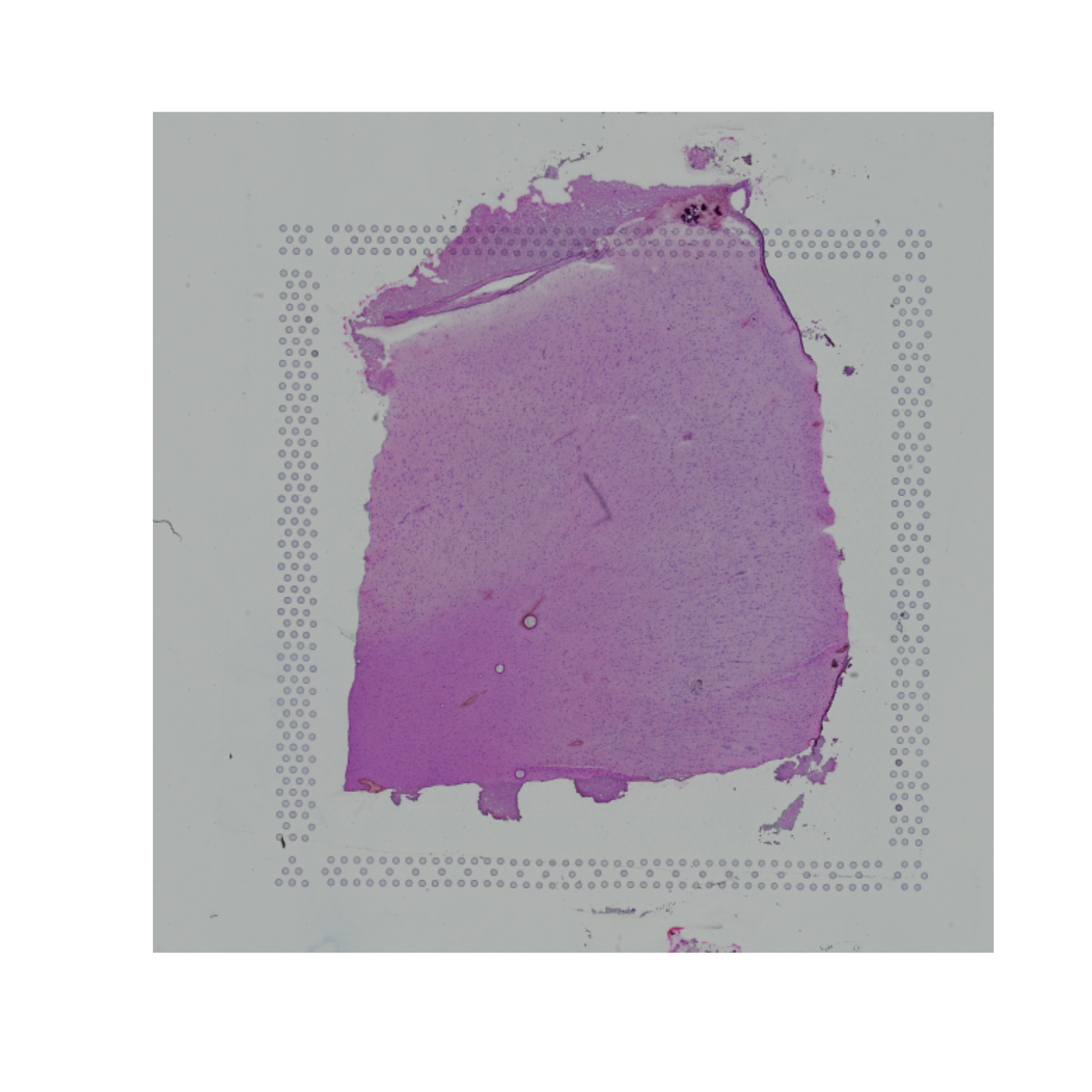 Finally, the SpatialExperiment object also contains the image data from the STx experiment, giving the coordinates we looked at in the previous section some context in terms of the tissue of origin.