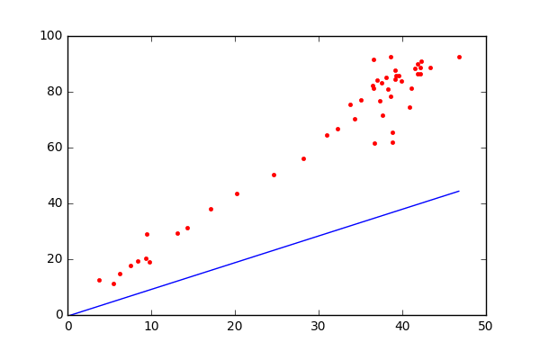 Figure 3.2: Fitted line if estimated intercept is forced to be 0