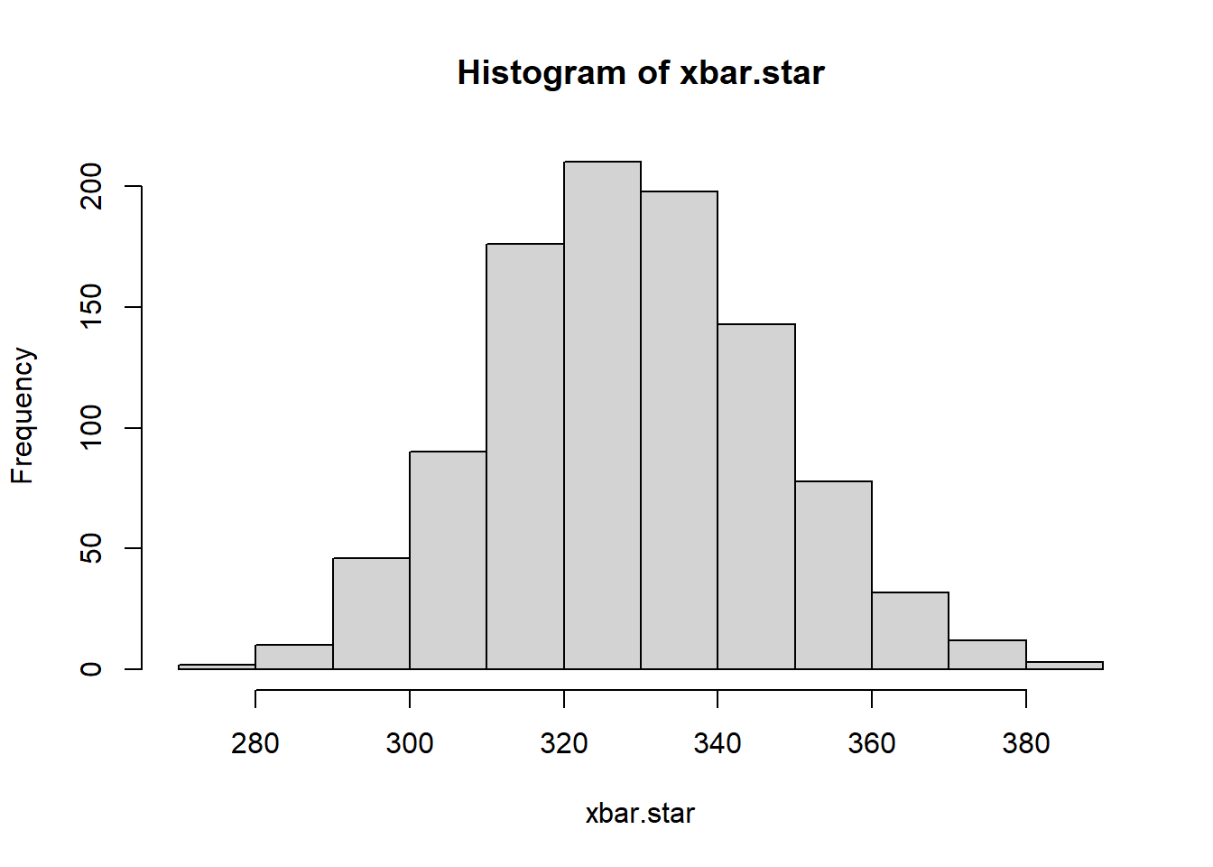 Compute bootstrap statistic \(\hat{\theta}^∗\) using the bootstrap sample as \(\hat{\theta}^∗=T(X^*_1,X^*_2,...,X^*_n)'\)