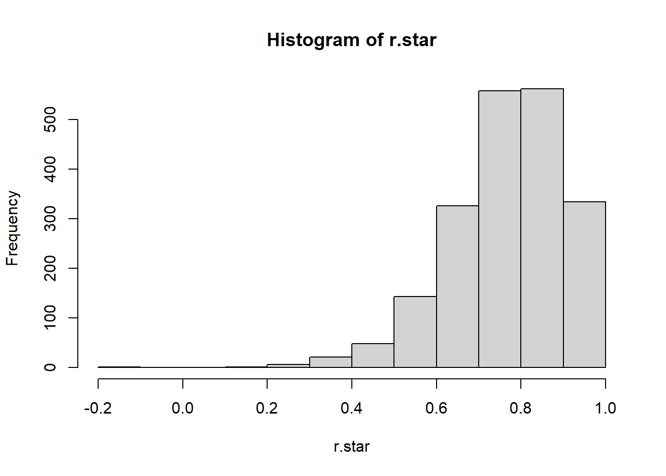 r.star[b] <- cor(data.boot$x, data.boot$y)