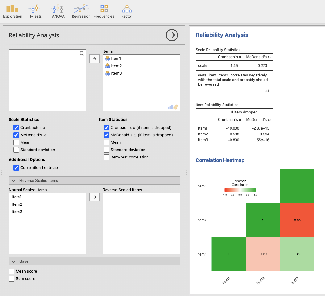 McDonald’s omega เป็นหนึ่งในวิธีการวัดความเชื่อถือของการวัด (reliability) ที่ใช้ในการวิเคราะห์ข้อมูลที่เกี่ยวข้องกับแบบสอบถามหรือข้อสอบที่มีหลายรายการ (items) อีกหนึ่งวิธีนอกเหนือจาก Cronbach’s alpha โดย McDonald’s omega มีความยืดหยุ่นมากกว่าในการวัดความเชื่อถือของรายการที่ไม่ได้มีการสมมติฐานความสม่ำเสมอ (tau-equivalence) ซึ่งทำให้ McDonald’s omega เป็นทางเลือกที่ดีในบางกรณีที่ Cronbach’s alpha อาจจะไม่เหมาะสมหรือไม่สามารถนำมาใช้ได้ตามเงื่อนไขที่กำหนดไว้