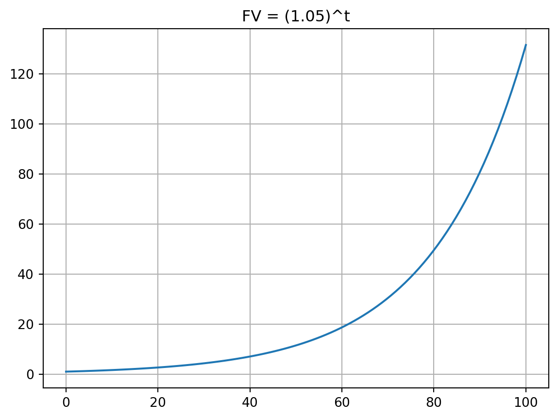# แปลงเป็นฟังก์ชัน Python (numerical FV =(1.05)^t