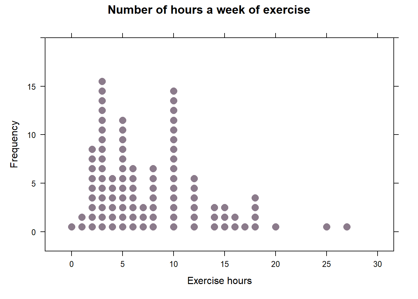 5.3 Dotplot of exercise hours data from StudentSurvey