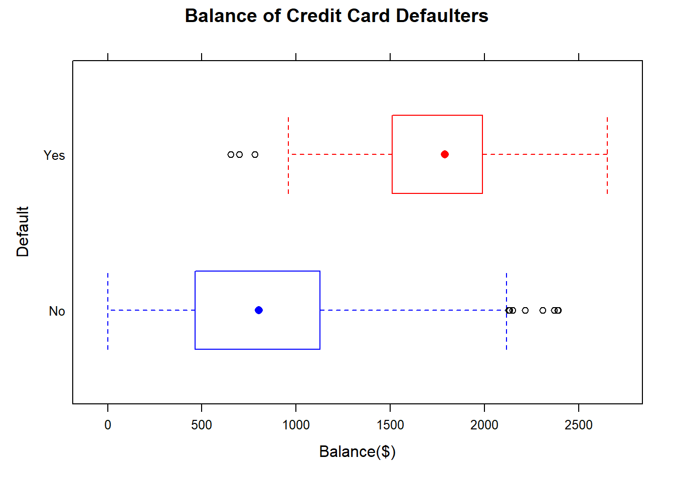 bwplot(Default$default~Default$balance, horizontal = TRUE,