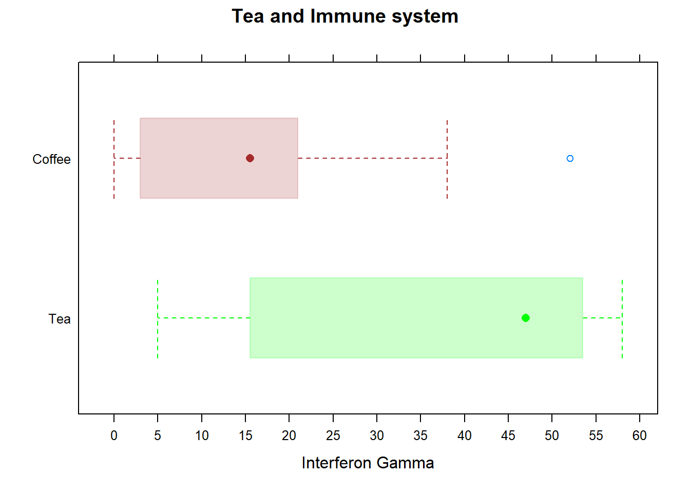 xlab='Interferon Gamma', main='Tea and Immune system',