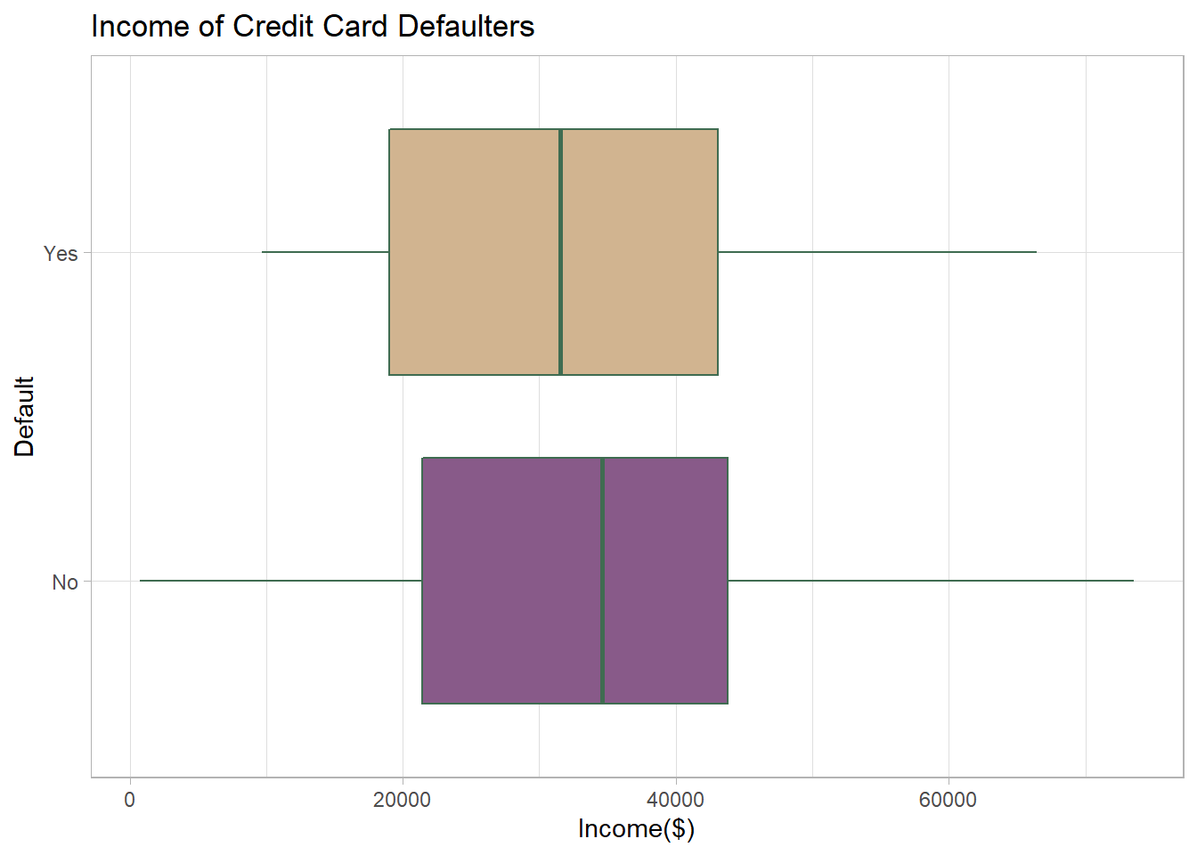 Customers that defaulted on their credit card payments (Default = Yes) and their annual Income. 20