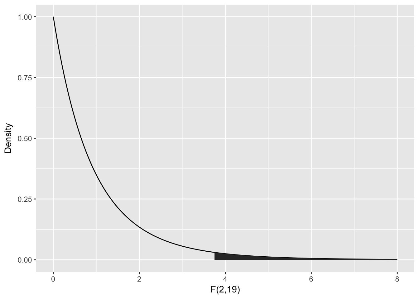 pf(3.7113, df1 = 2, df2 = 19, lower.tail = FALSE)## [1] 0.04359046