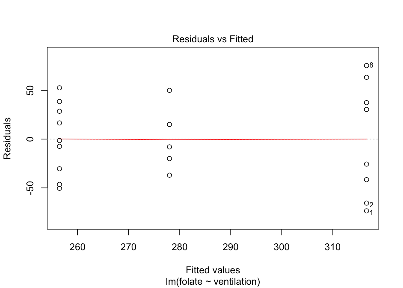 rcf.mod <- lm(folate~ventilation, data = red.cell.folate)