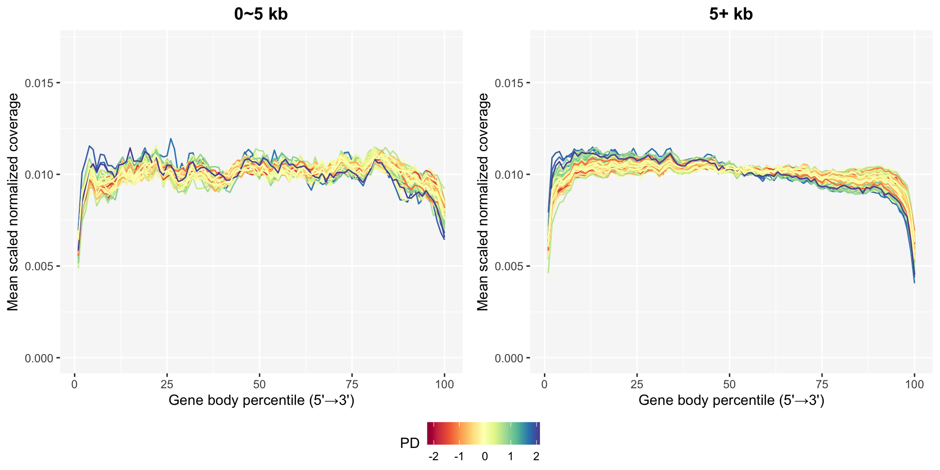 The gene body coverage plots in gene body coverage chapter can be updated after removing bad samples using the plot_GBCg function. The coverage patterns become much more stable, especially in the long genes.