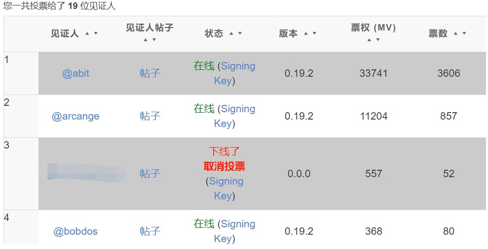查看所有的见证人,并可以给他们投票(一个账户有30票可以投)或者取消投票