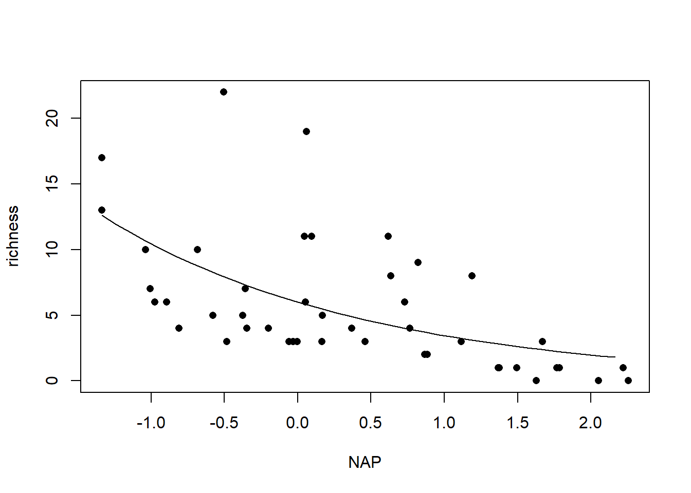 ## glm(formula = richness ~ NAP, family = "quasipoisson", data = richness.data)