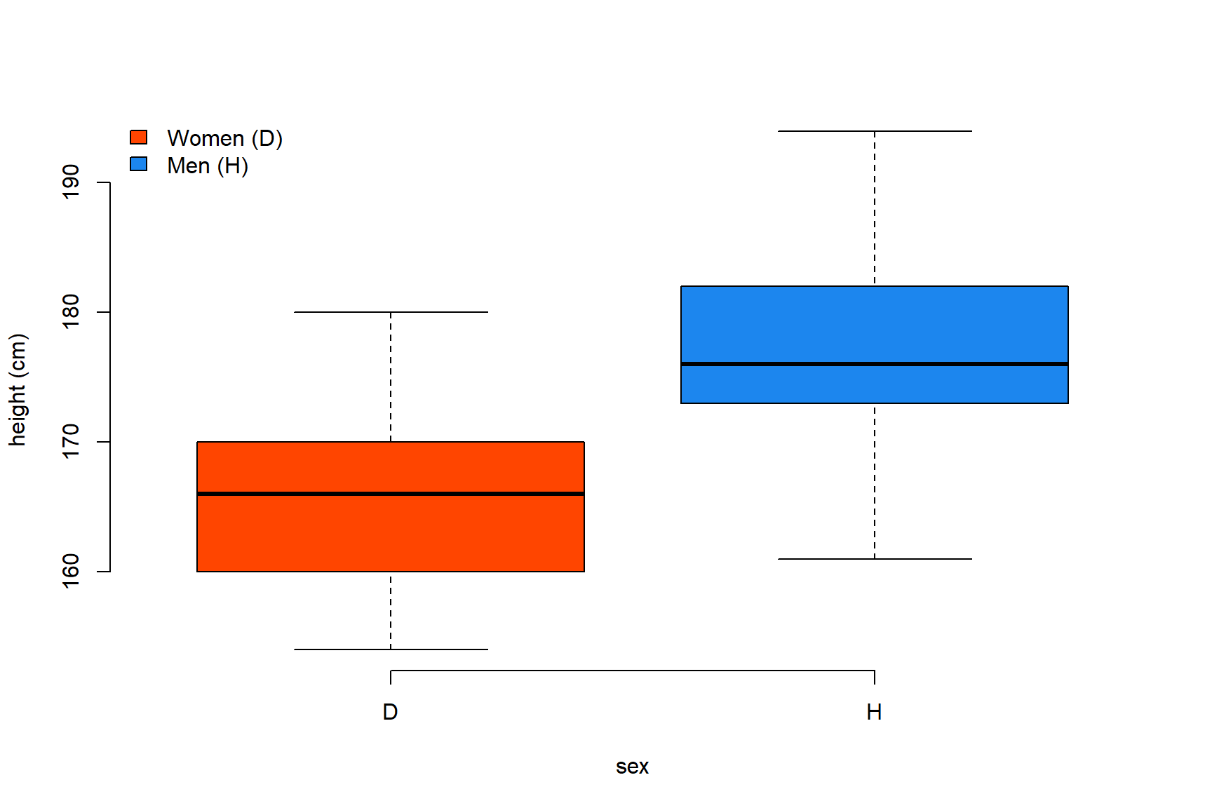 Quan la variable x és categòrica (pes_alumnes.data$sex), R automàticament genera un boxplot per a cada categoria.