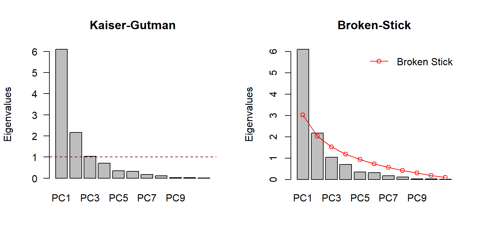 Tot i que l’anàlisi PCA es va definir originalment per a distribucions multinormals, és força robust a desviacions de la normalitat de les variables sempre i quan les distribucions d’aquestes no siguin exageradament esbiaixades. En canvi, és estrictament essencial que les dades estiguin estandarditzades per evitar que variables de major magnitud i/o rang de variabilitat tinguin una influència desproporcionada en l’anàlisi (veure secció “1.4.1.estandardització de les dades” per detalls). Aquesta estandardització es pot fer a priori, per exemple mitjançant les funcions scale() o decostand() que hem vist en seccions anteriors, o també es pot cridar directament al fer l’anàlisi PCA com veureu a sota.