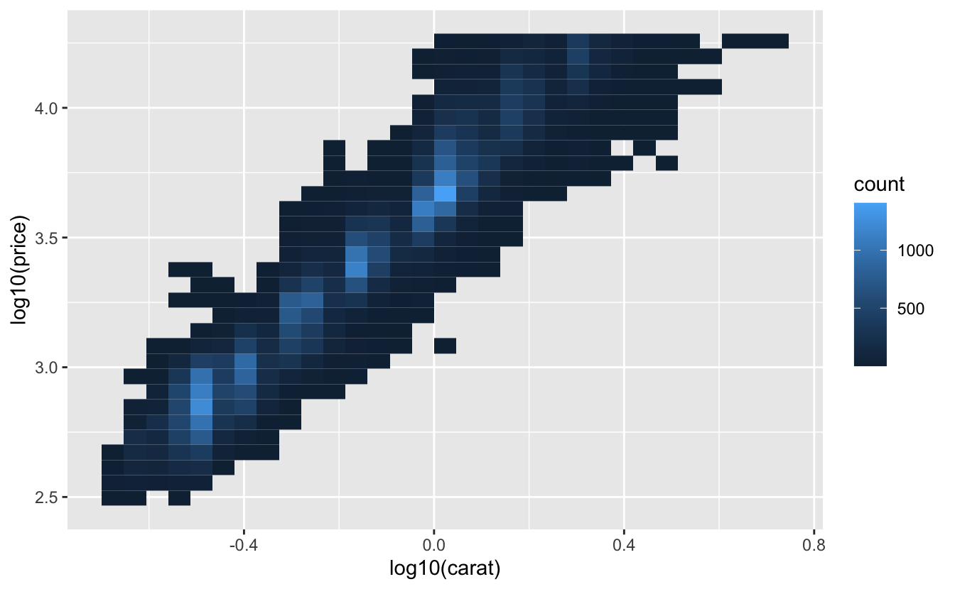 ggplot(df, aes(x, y)) + geom_hex() + scale_colour_gradient(low = "white", high = "red") + coord_fixed() #> Warning: Computation failed in `stat_binhex()`: #> The `hexbin` package is required for `stat_binhex()` What is the first argument to every scale? How does it compare to