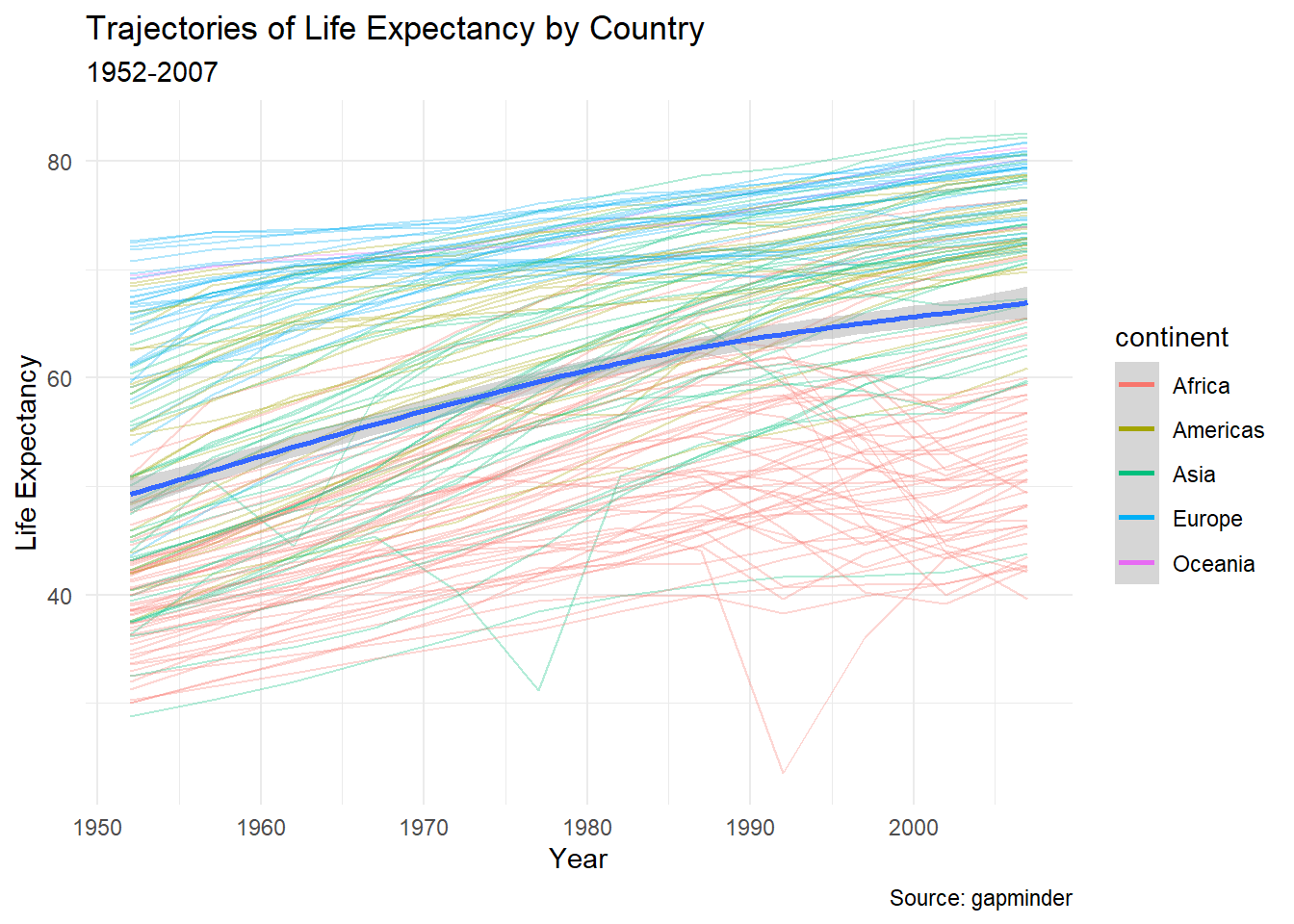 se=FALSEoption withingeom_smooth()to remove confidence bands - Use theme_classic()