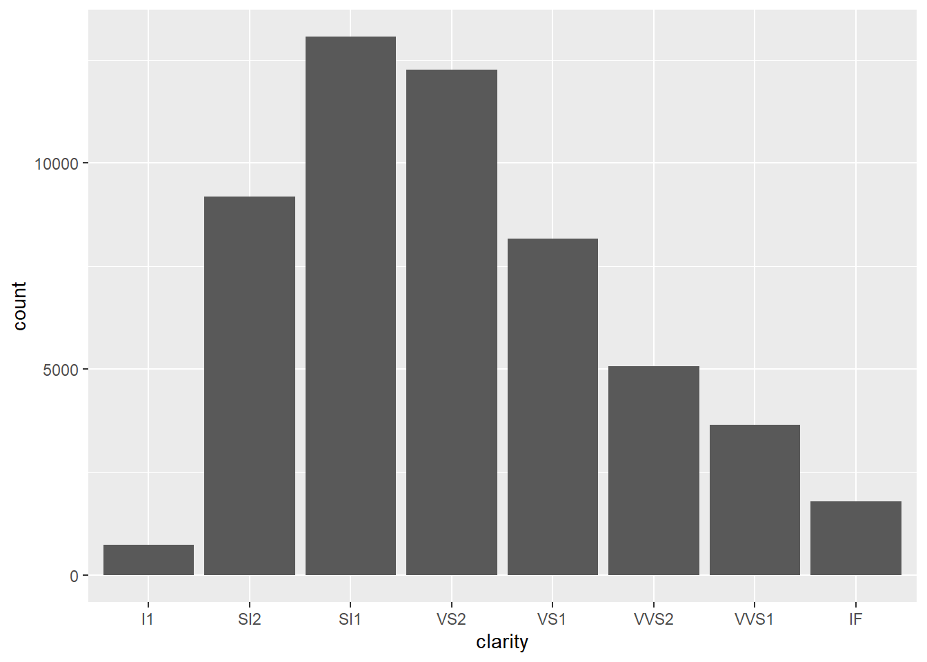 ggplot(diamonds, aes(carat)) + stat_bin()## `stat_bin()` using `bins = 30`. Pick better value with `binwidth`.
