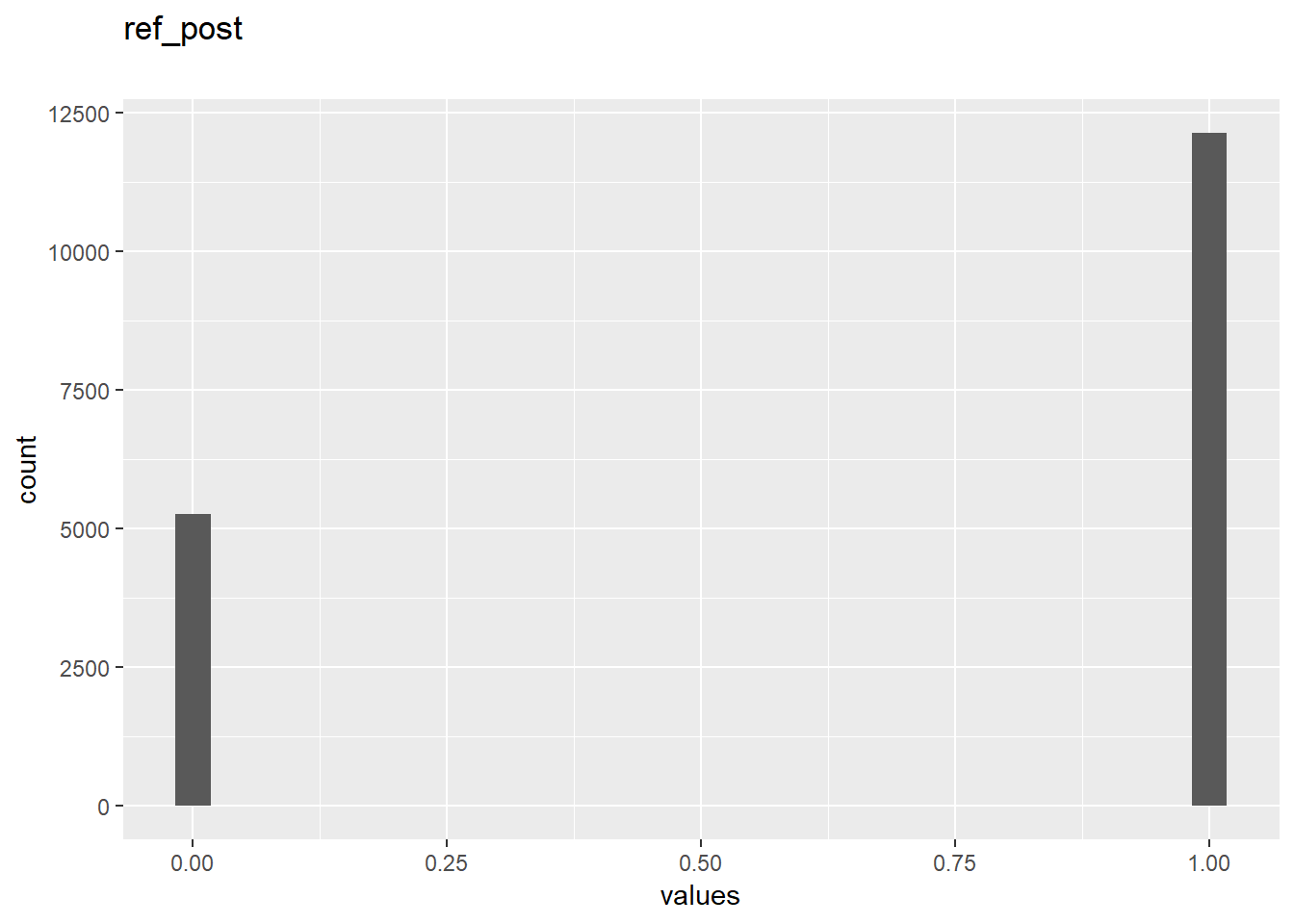 | ref_post | numeric | 0 | 17405 | 17405 | 0.7 | 0.46 | 0 | 0 | 1 | 1 | 1 | ▃▁▁▁▁▁▁▇ | F8.2 |
