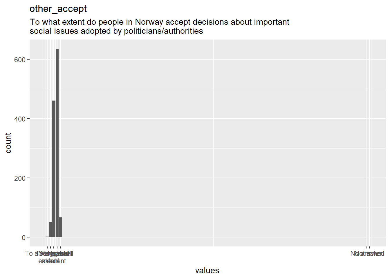 | other_accept | To what extent do people in Norway accept decisions about important social issues adopted by politicians/authorities | haven_labelled |
