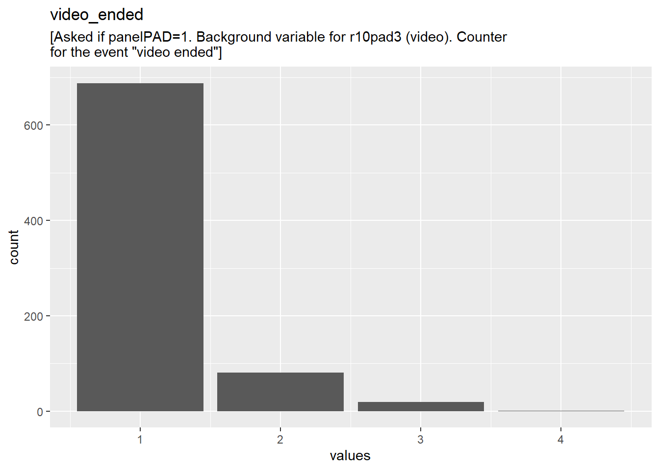 [Asked if panelPAD=1. Background variable for r10pad3 (video). Counter for the event “video ended”]