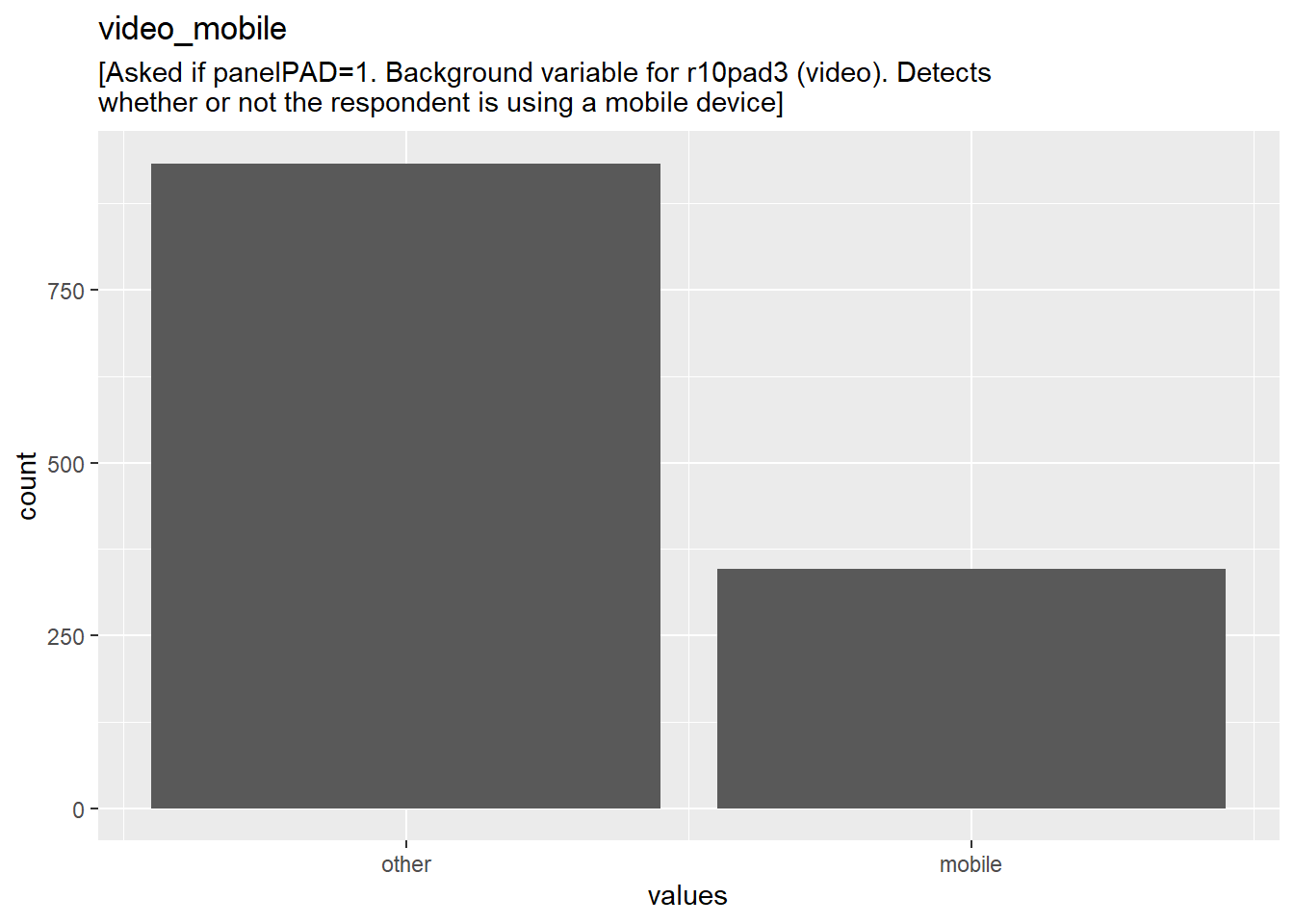 "description": "[Asked if panelPAD=1. Background variable for r10pad3 (video). Detects whether or not the respondent is using a mobile device]\r\n",