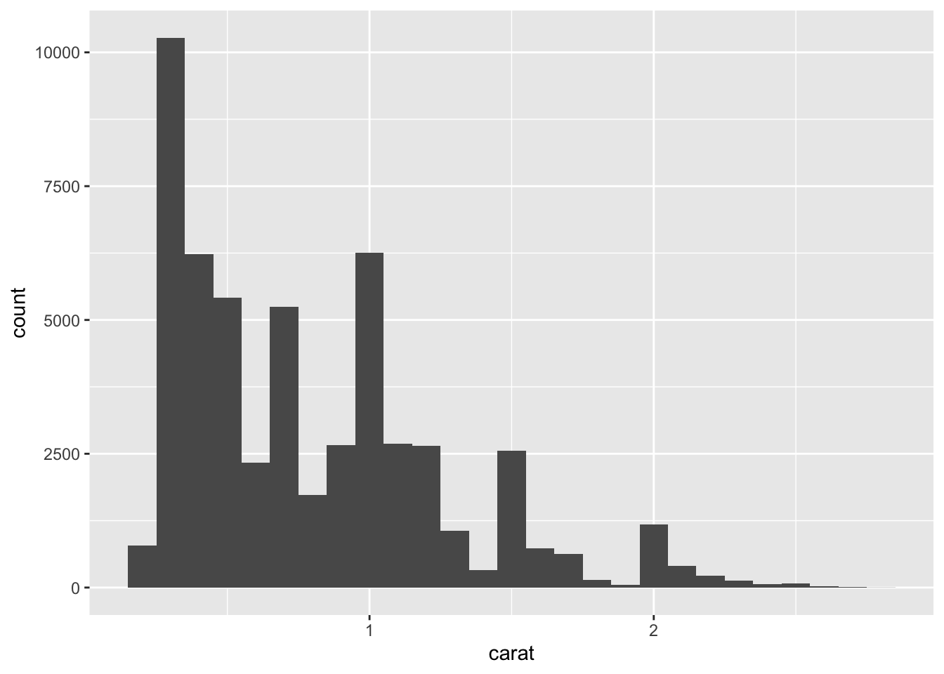 ggplot(data = smaller, mapping = aes(x=carat))+