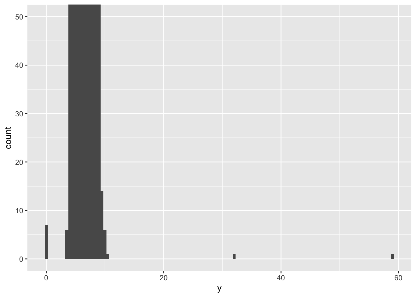 geom_histogram(mapping = aes(x=y), binwidth = .5)