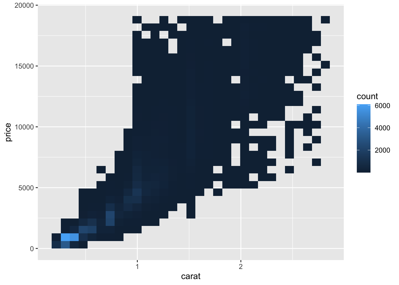 geom_bin2d(aes(carat, price))