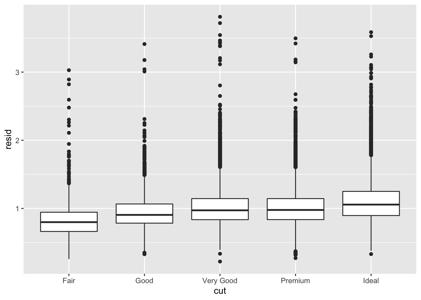 geom_boxplot(aes(cut, resid))
