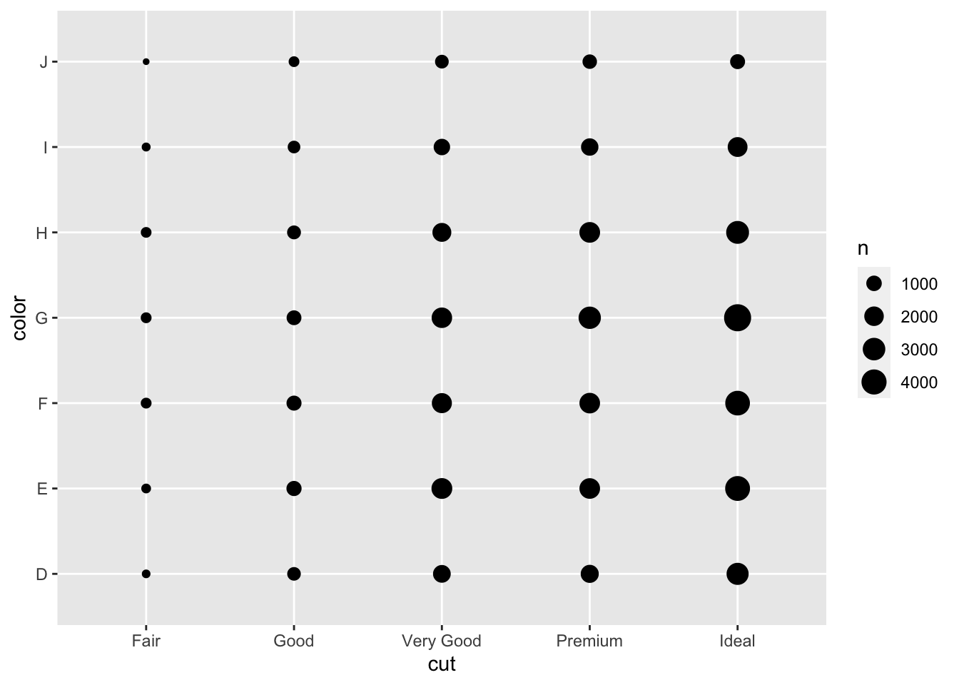 geom_count(mapping = aes(x=cut, y=color))