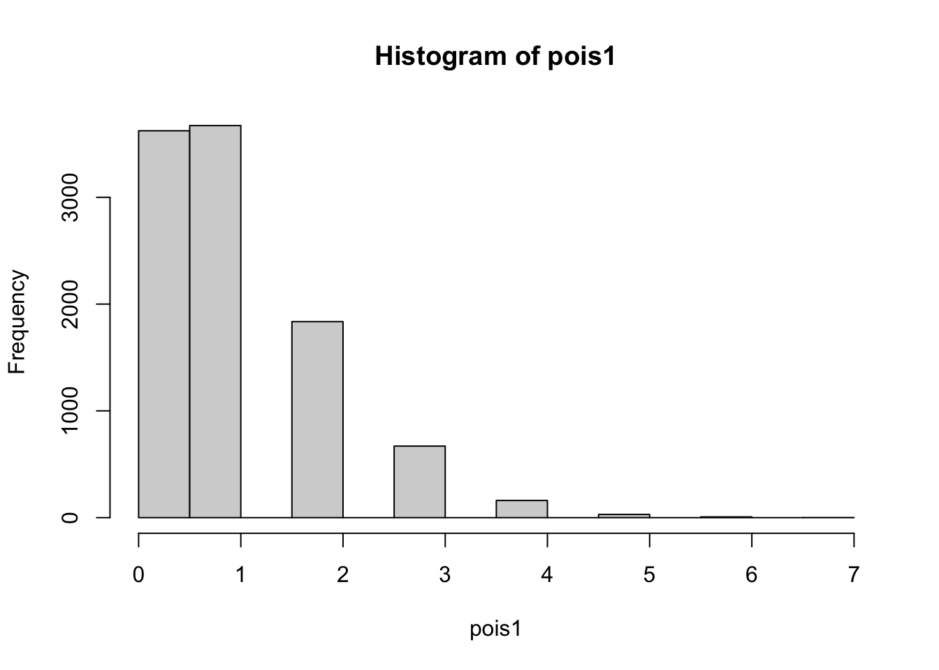 pois1 <- rpois(10000, 1)