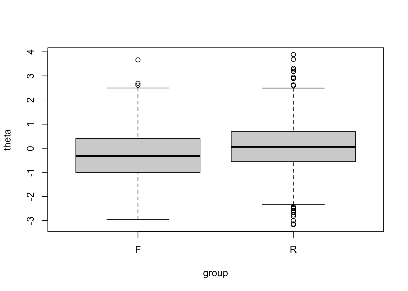 Just to illustrate the true \(\theta\) distribution in the two groups, let us do a boxplot.