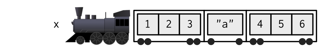 The figure below represents the structure of this list, think of it as a train with 4 carriages, inside each carriages are more individual elements.
