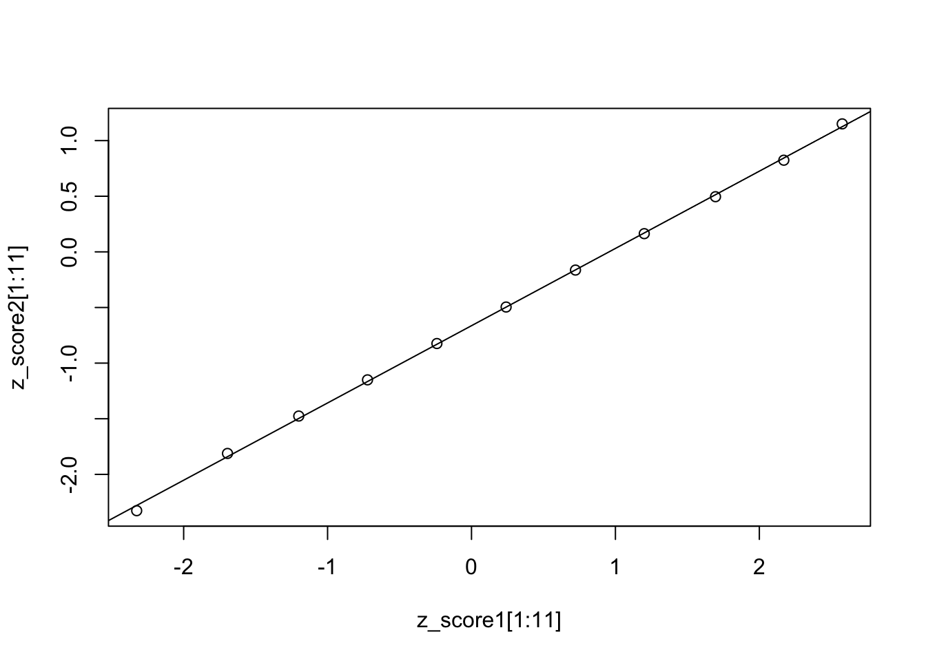If the two assumptions are satisfied, then the normalized scores will have equal intervals. We can verify if the scales are actually equal-interval by plotting the two normalized scores from the two samples.