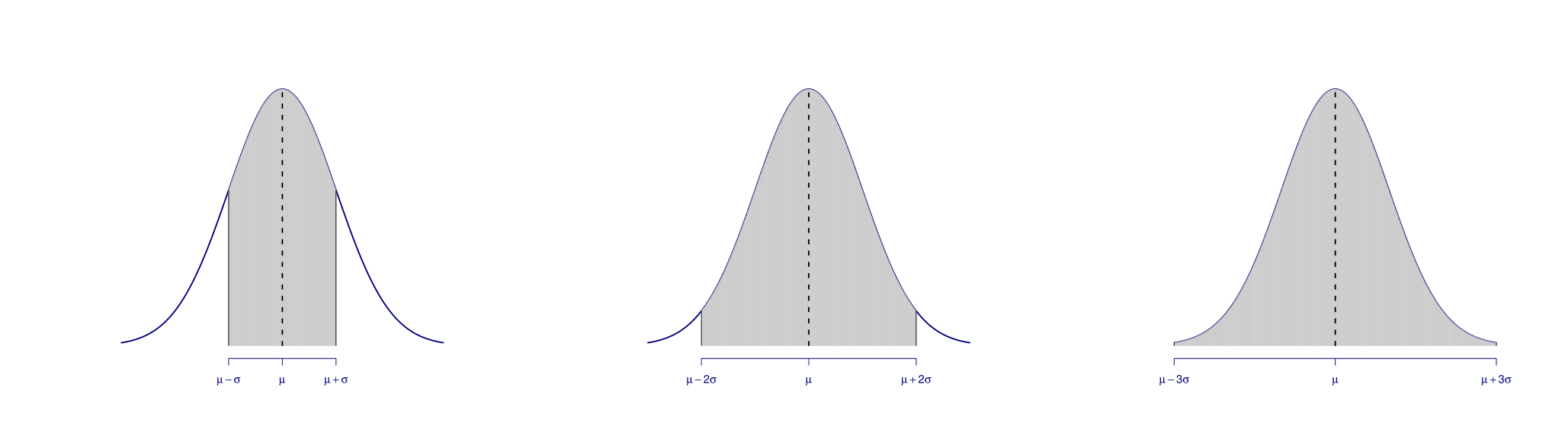 - Symmetric, i.e. it is not skewed either to the right or to the left. This also implies that the values of the density are the same for \(x\) and \(-x\), i.e \(\phi_{(\mu,\sigma)}(x) = \phi_{(\mu,\sigma)}(-x)\)