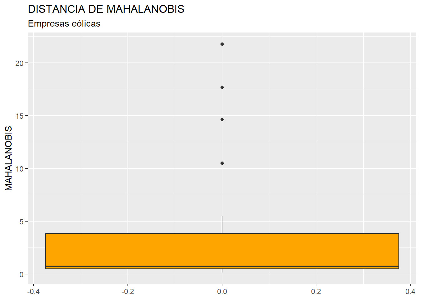 ggtitle("DISTANCIA DE MAHALANOBIS", subtitle = "Empresas eólicas") +