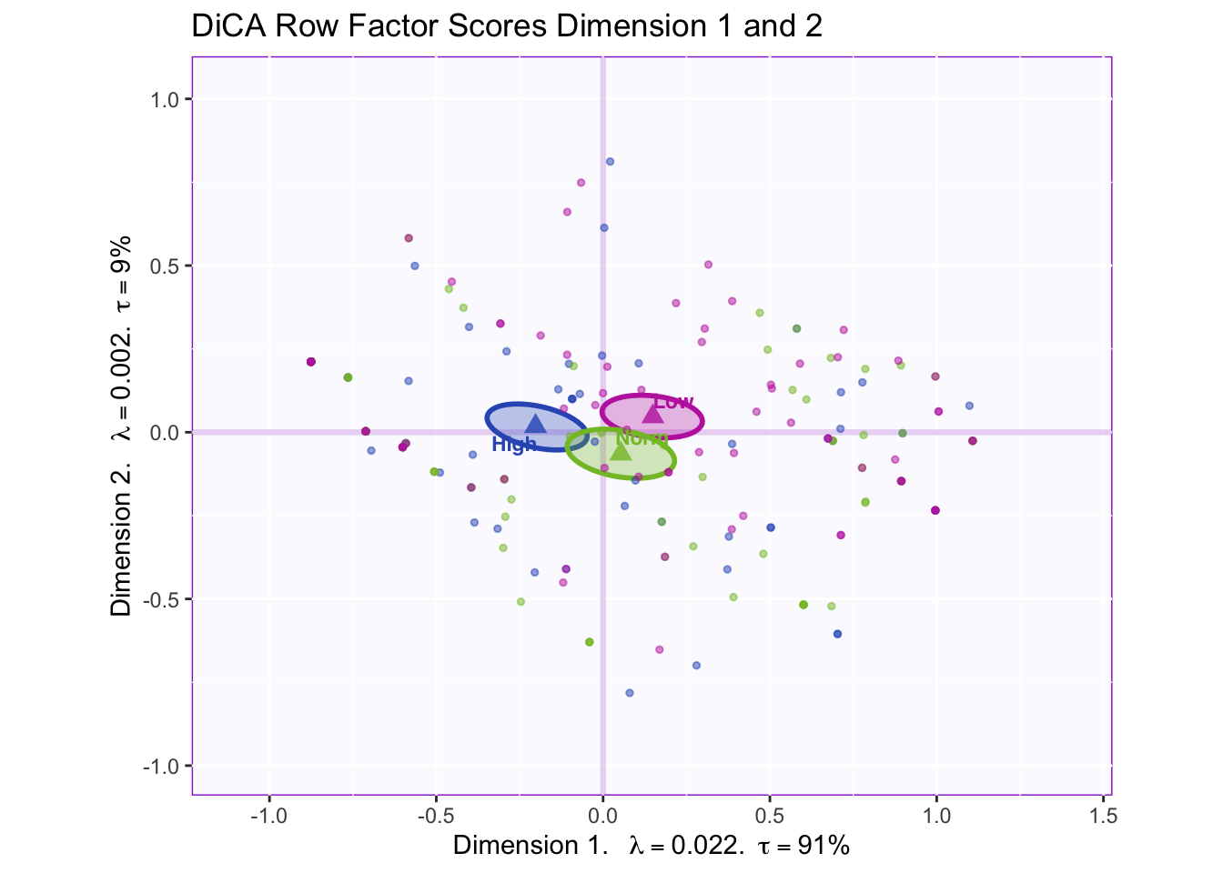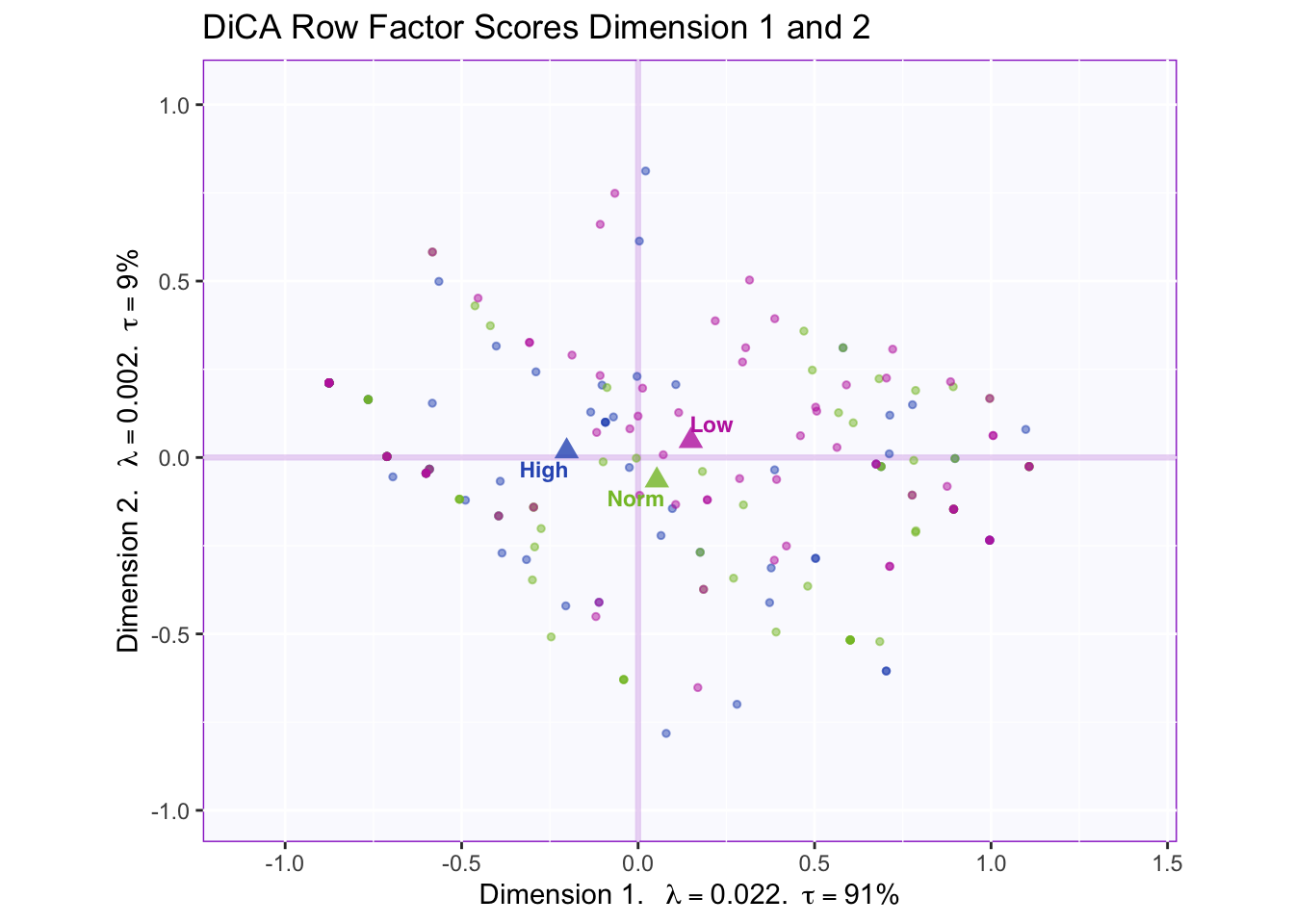 When we interpret the factor scores and loadings together, the DiCA revealed: