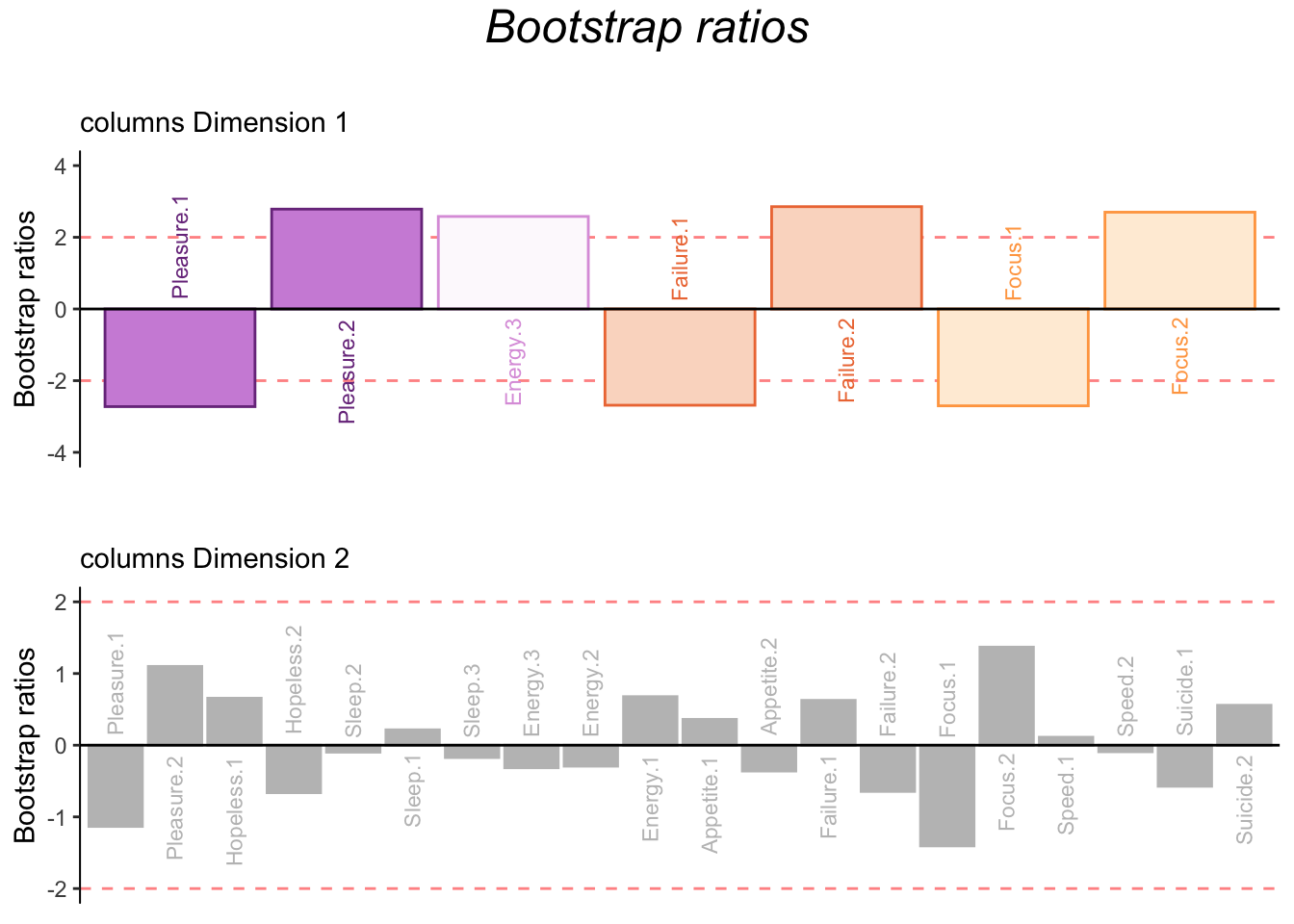 Columns interpretation: bootstraps show that nothing contributing in this dimension is reliable