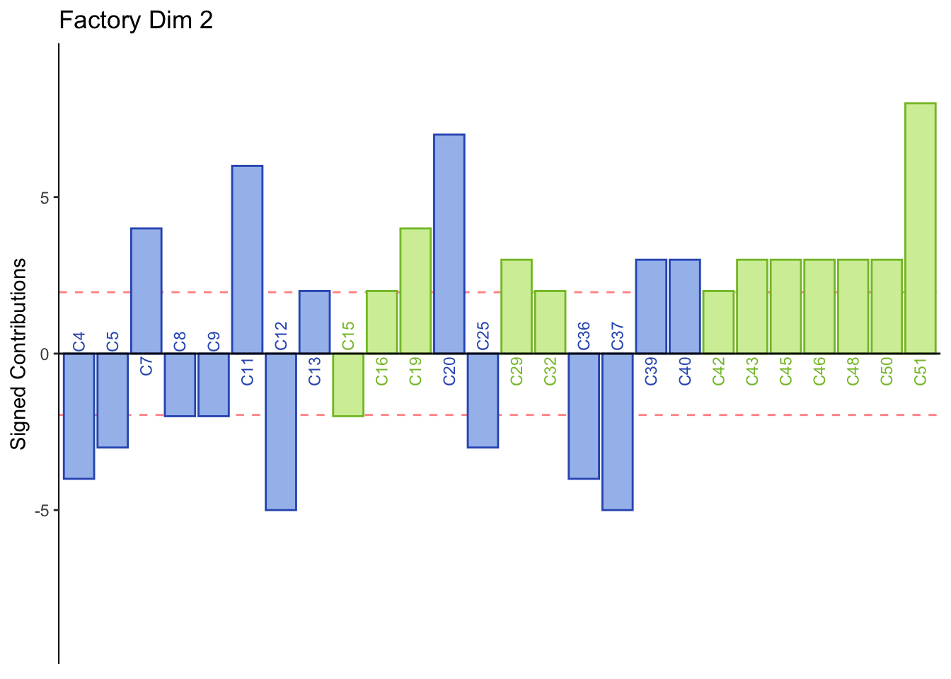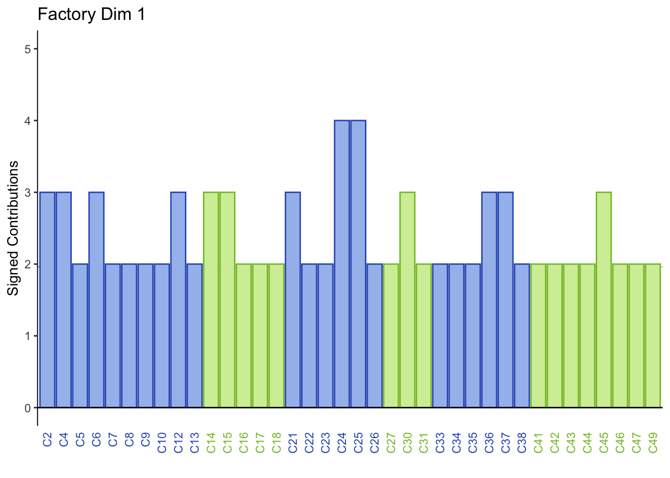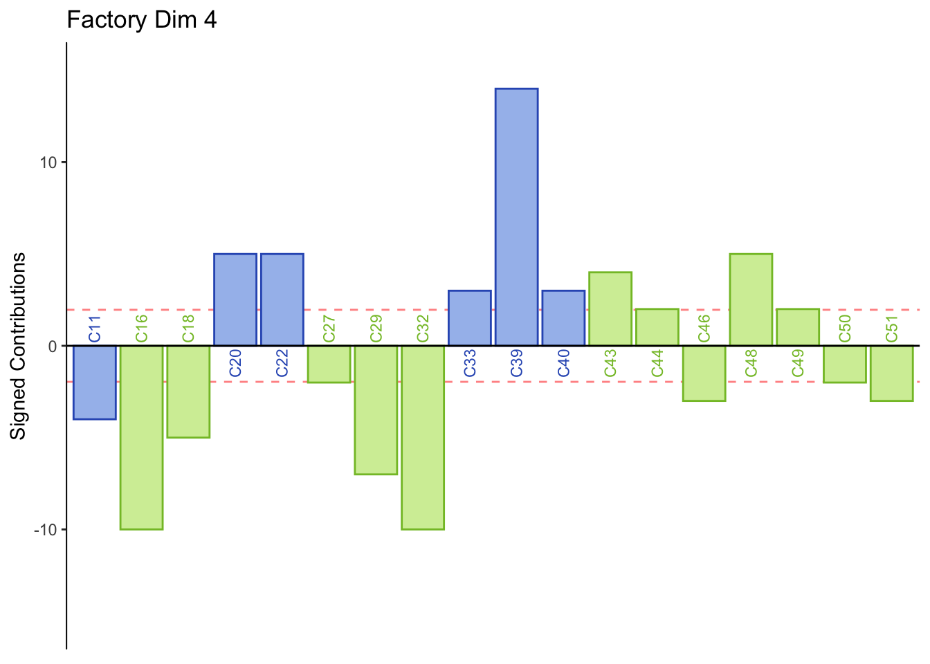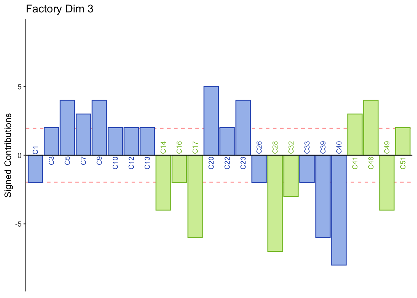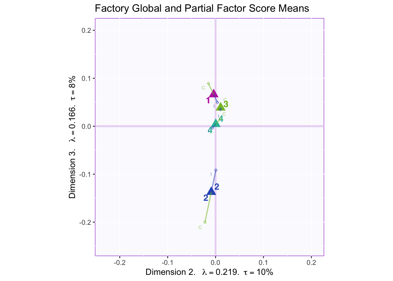 The compromise scree plot shows that the first four dimensions are above the Kaiser line. This is how we determine how many dimensions will be analyzed.