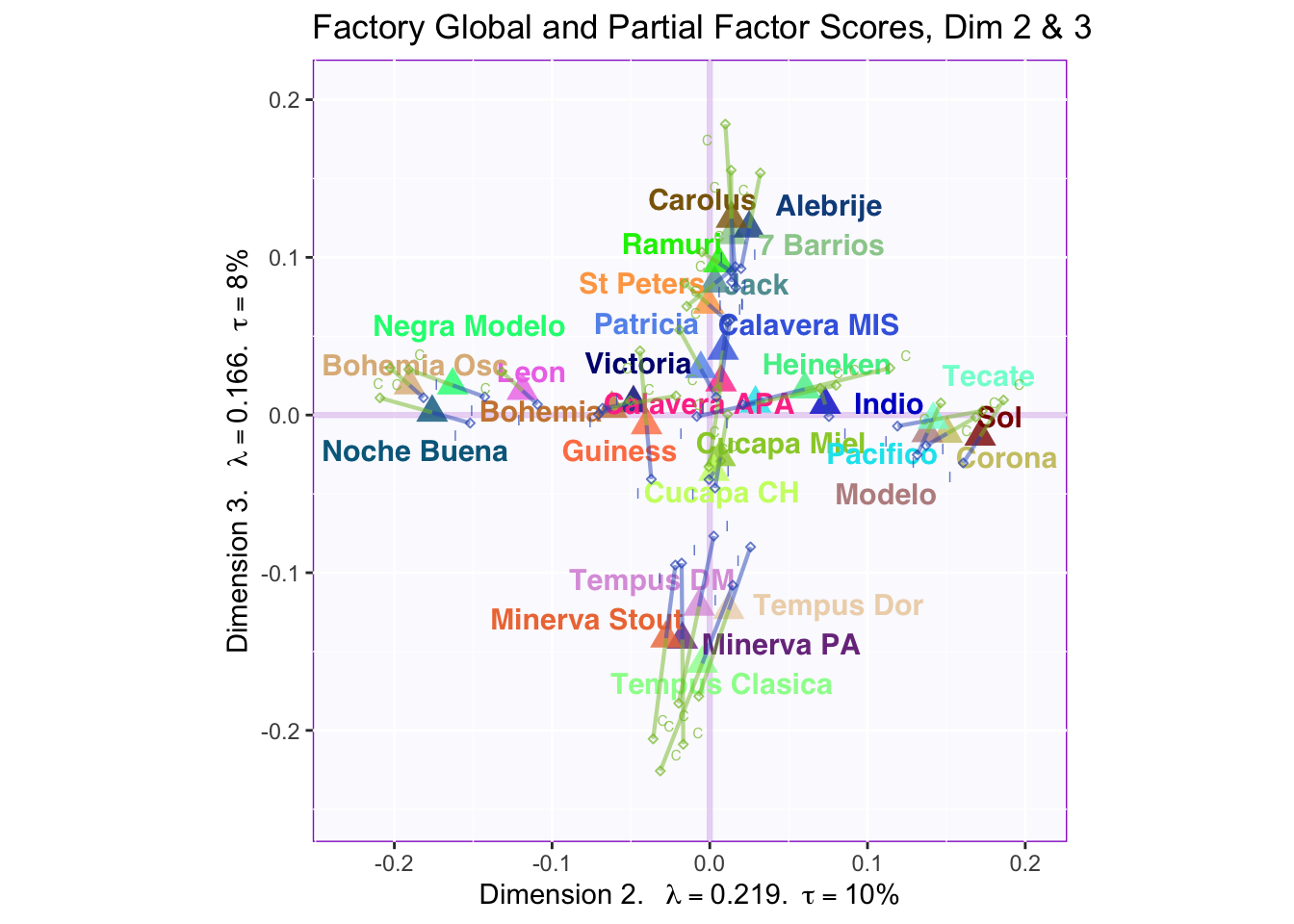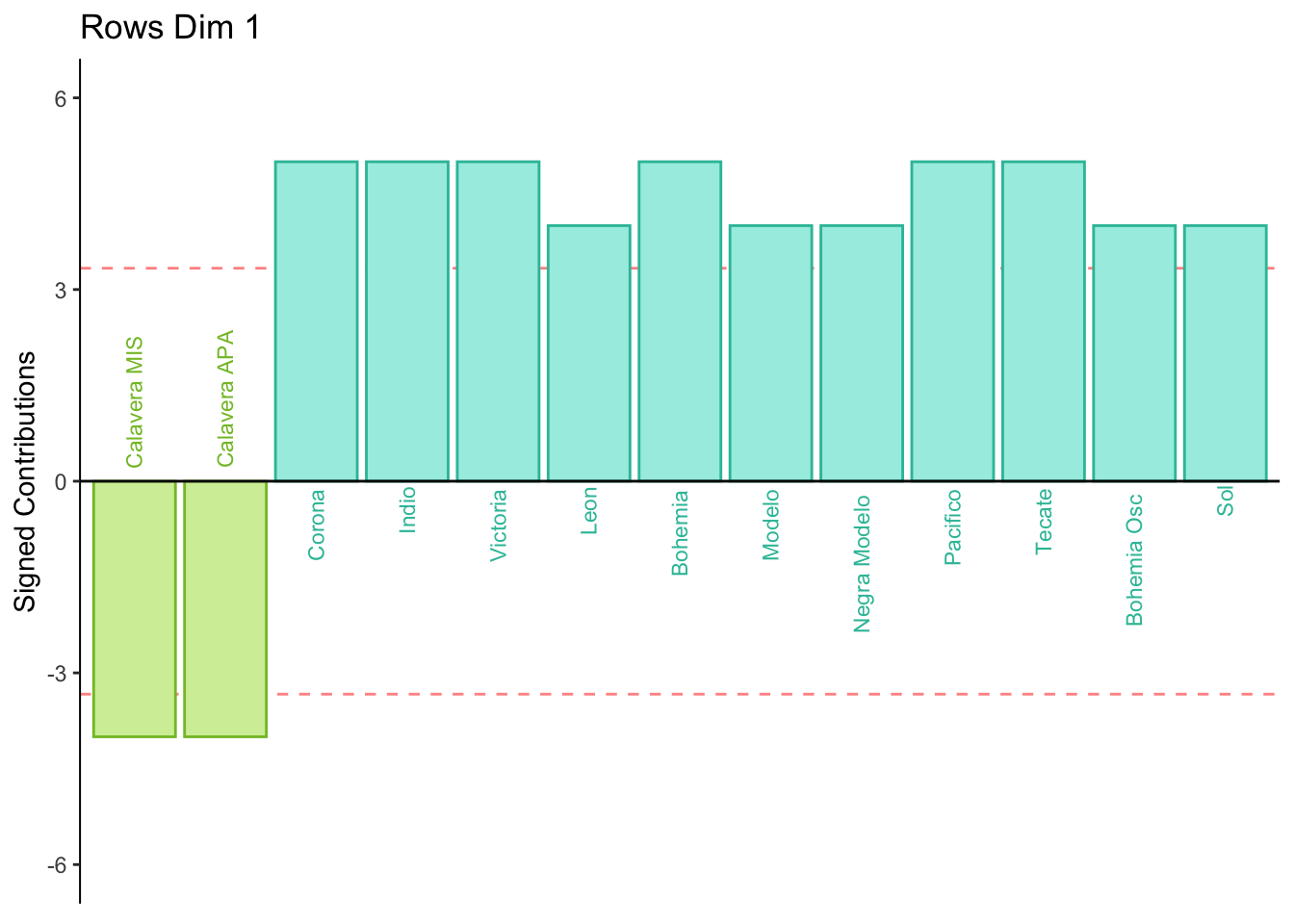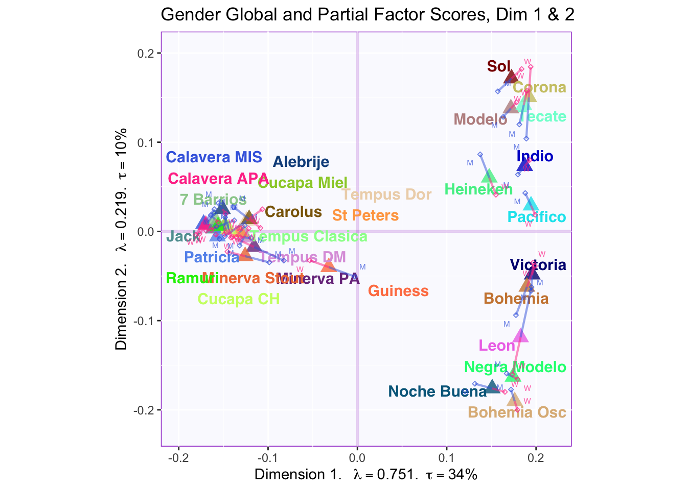 Dimension 2: Females or those who consume crafted beer sorted Corona, Modelo, Tecate, and Sol together (half of group 4).