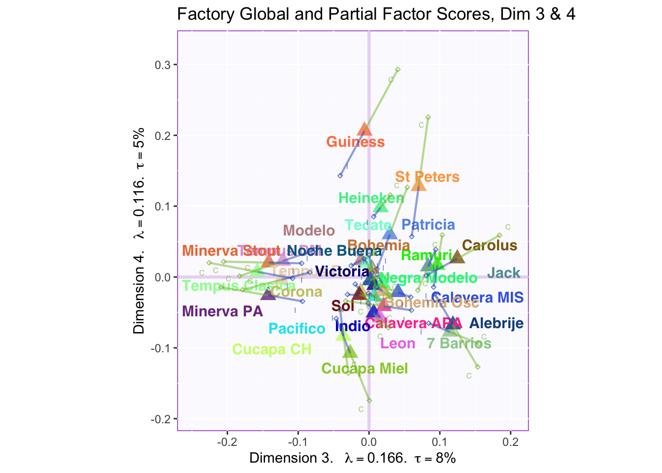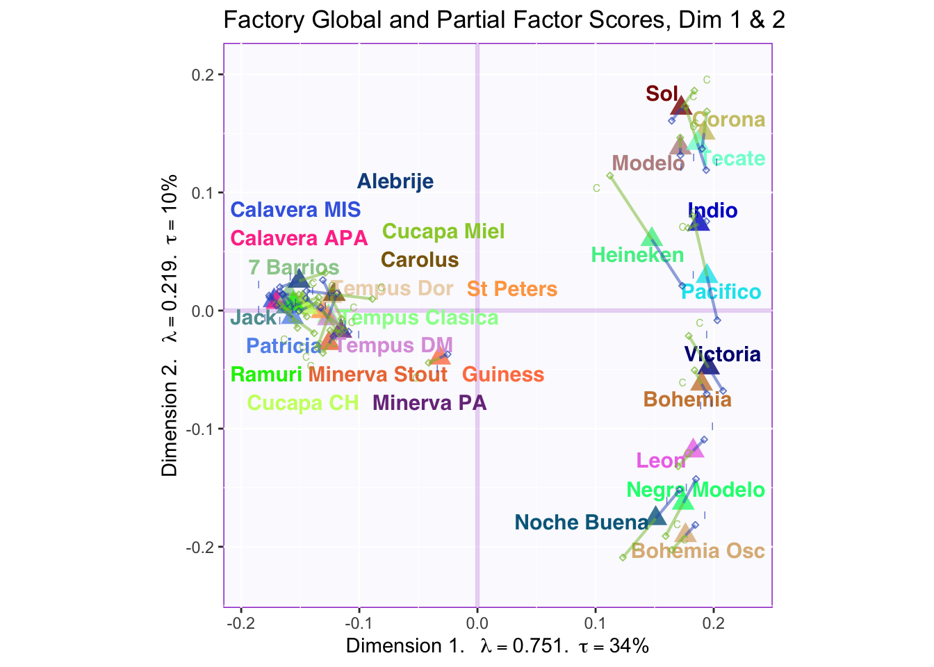Dimension 1: All participants sorted mild tasting beers (group 4) together or Calavera beers (group 3) together.