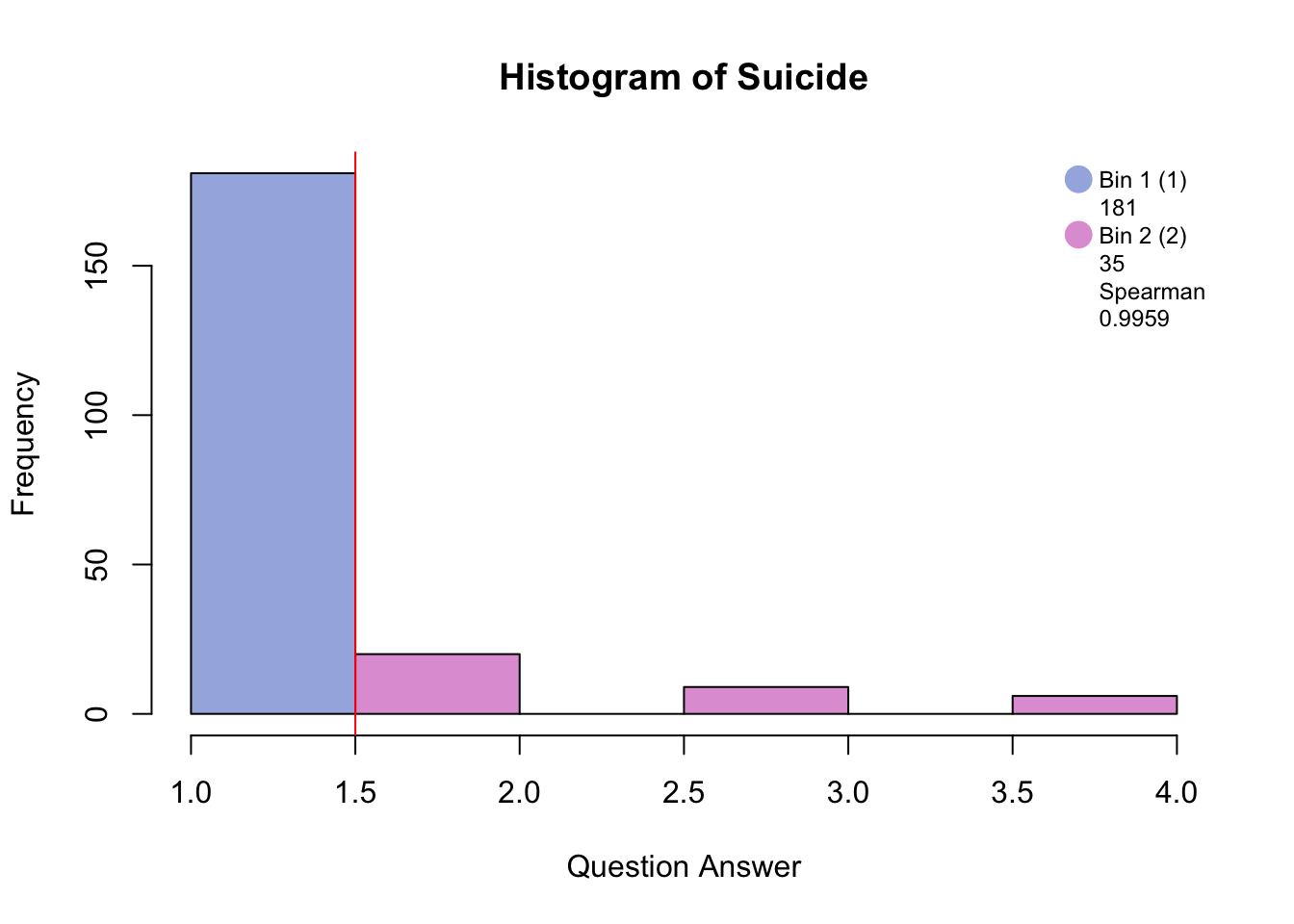 #hist.SuicideBinning with blue and pink has created groups of “no days” and “several days and higher.”