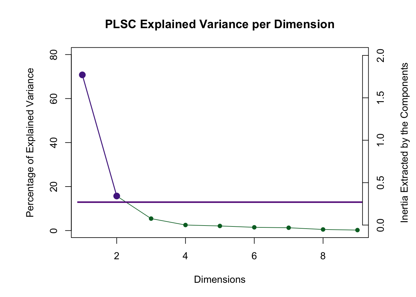 However, PLSC suffers from a strange null hypothesis when testing for reliable dimensions. The null hypothesis is that all variables are zero. That explains why the 7th dimension is “reliable.”