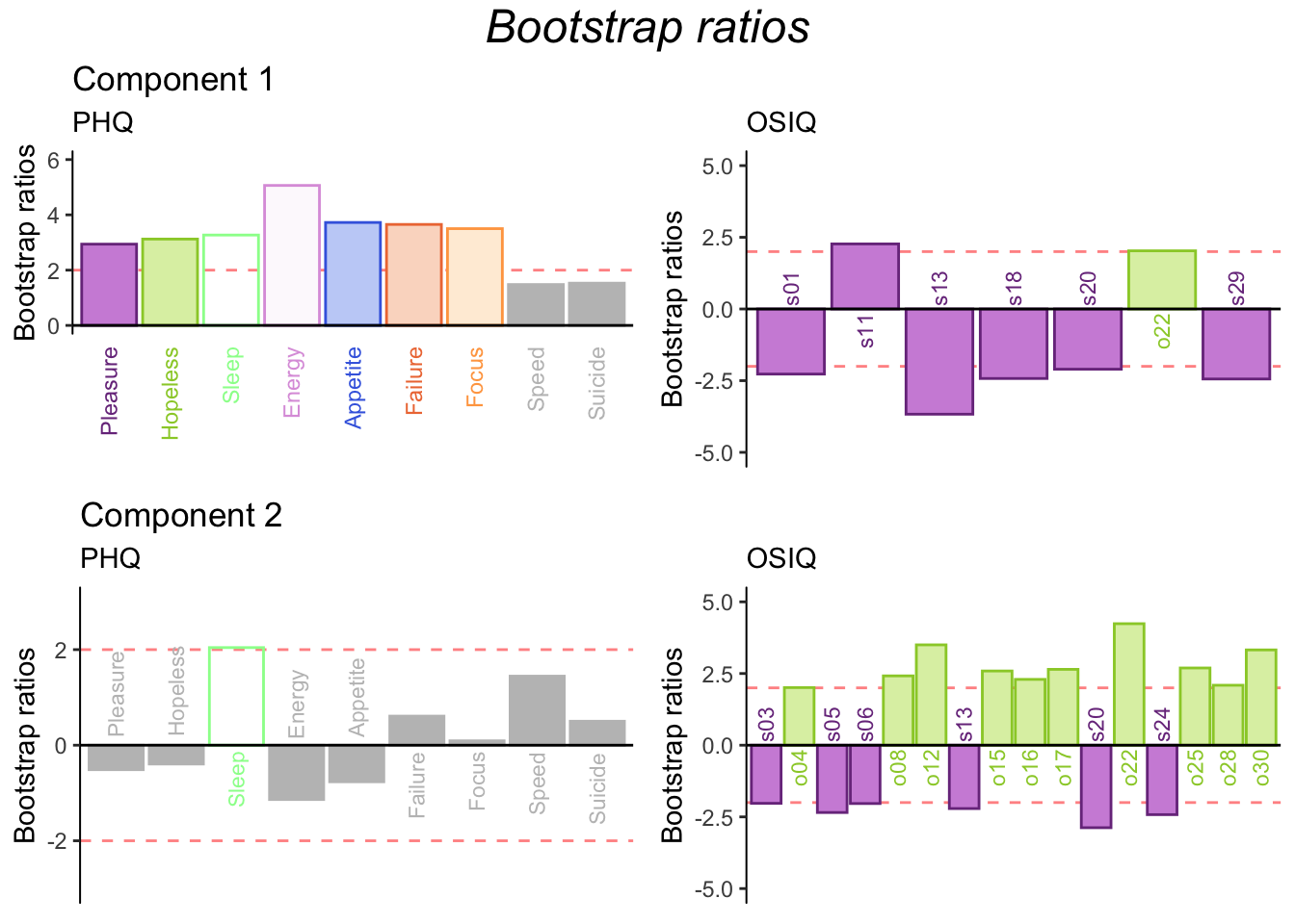 OSIQ: Analyze the bootstrap ratios when interpreting the reliable contributions.