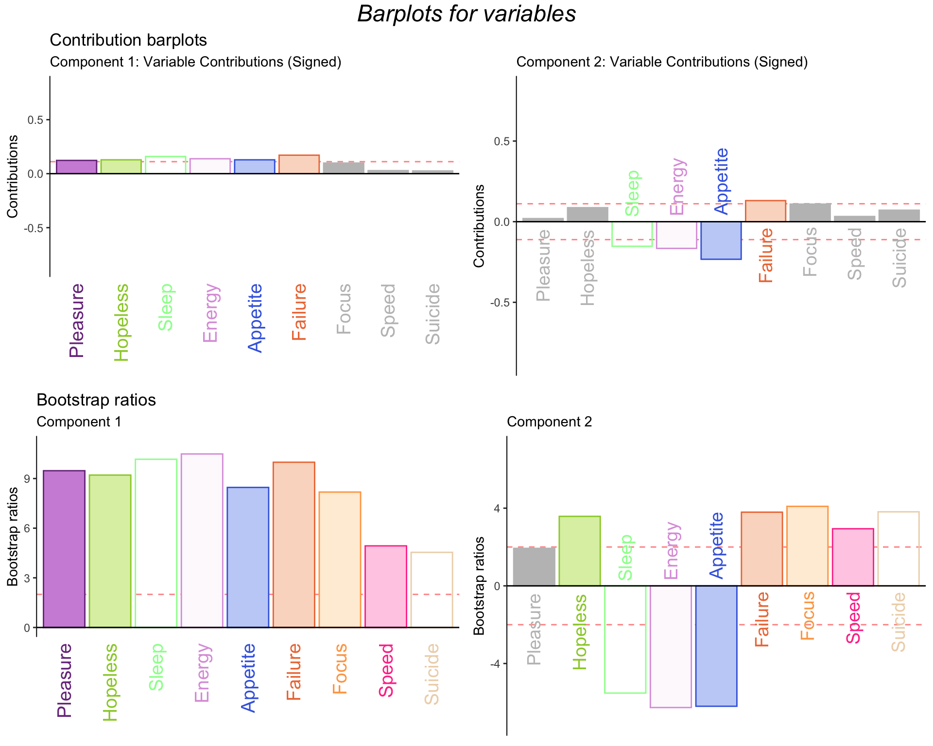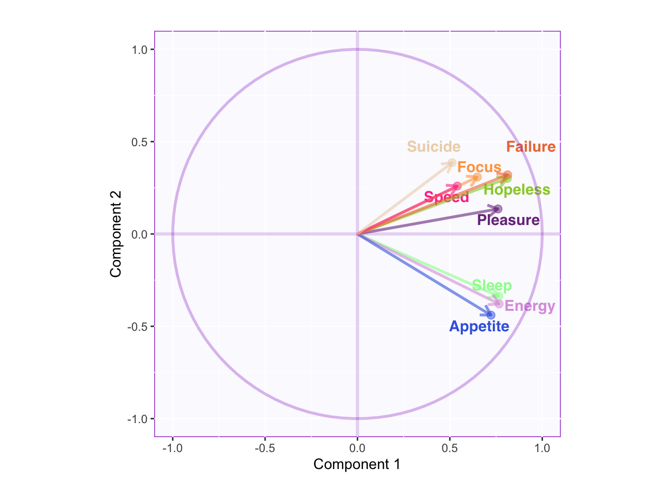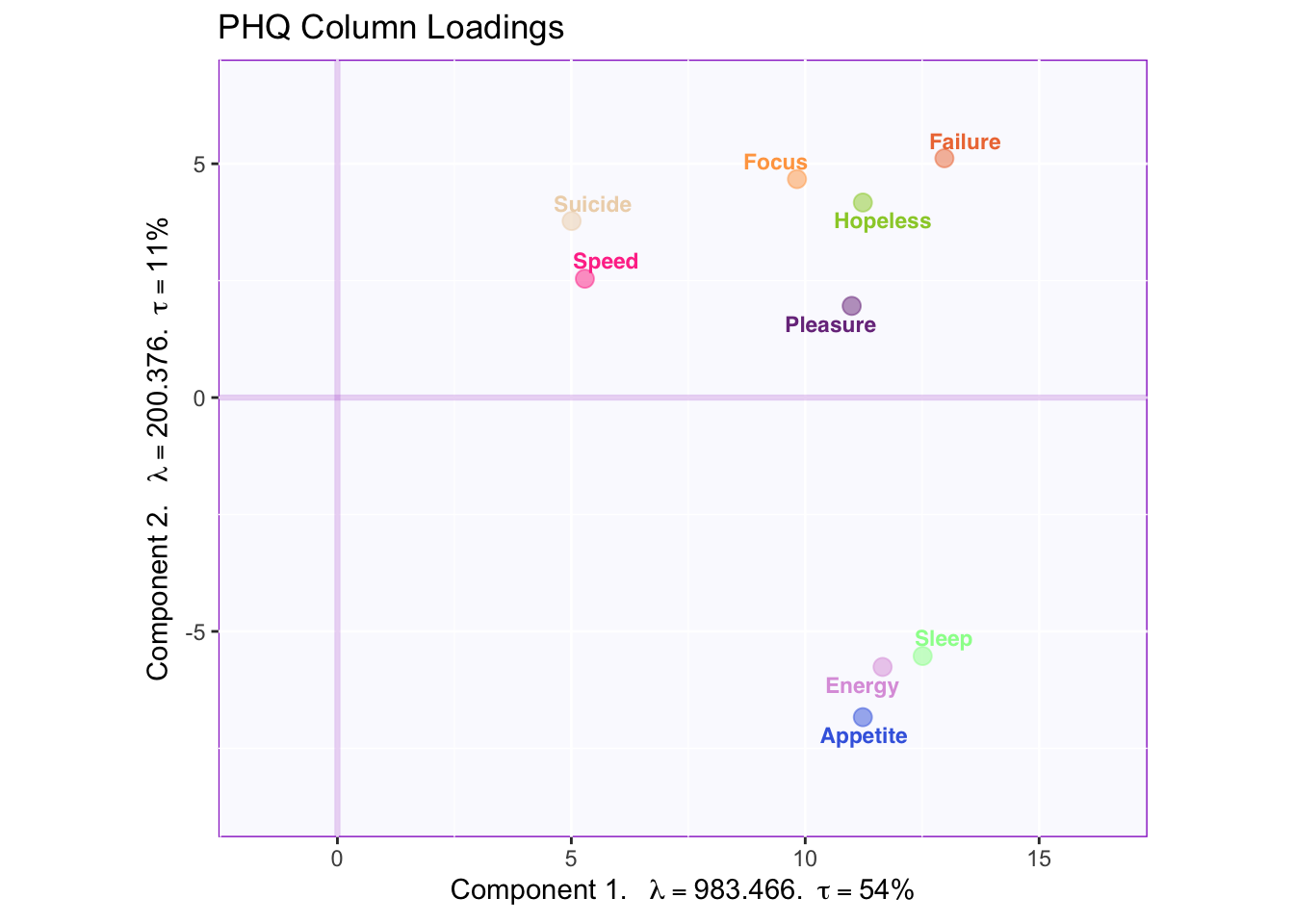 colnames(res_pcaInf$Fixed.Data$ExPosition.Data$fi) <- c('Pleasure','Hopeless','Sleep','Energy','Appetite','Failure','Focus','Speed','Suicide')